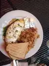 Small Cafe with GREAT food. Walnut, Caramel Pancakes (Wife), Chicken Monterey Sandwich (Me), Five Cheese Grilled Cheese (daughter). Great food and service plus there is a bunch of other things on the menu that I'm dying to try next time.