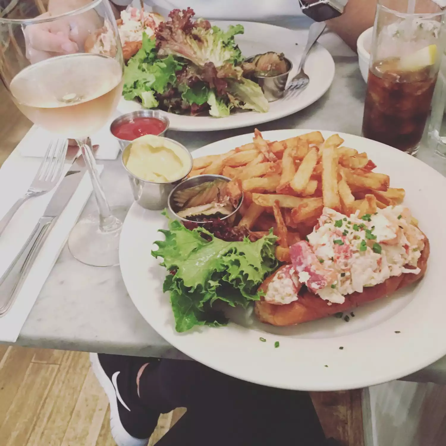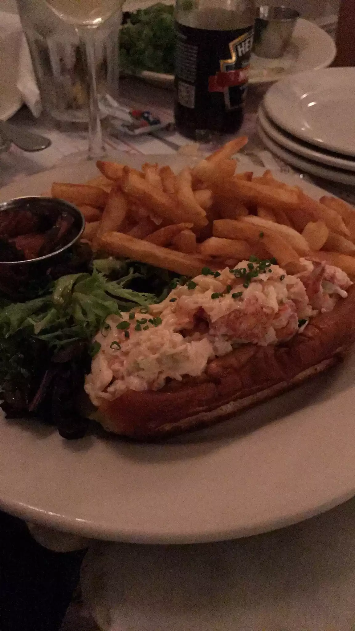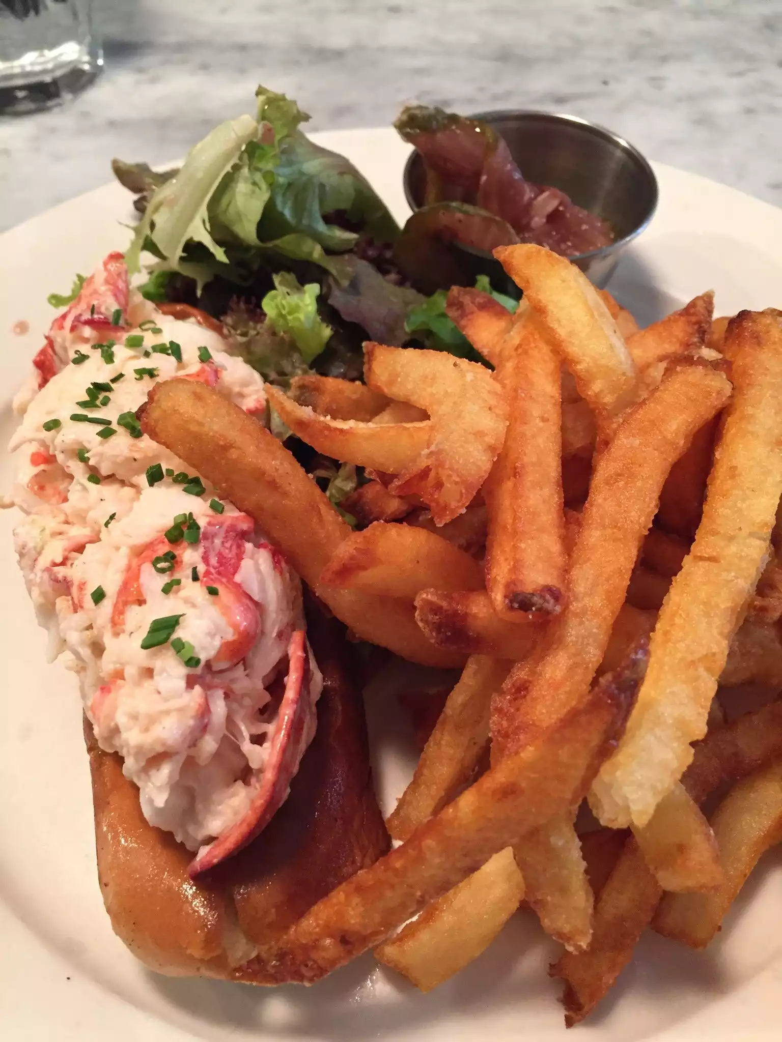 The steamed lobster was enormous and tasty. The iconic lobster roll was good but overpriced and really nothing special. Just a roll, a few pieces of lobster and fries for 34 usd. The chili marguerita was the winner of the evening.