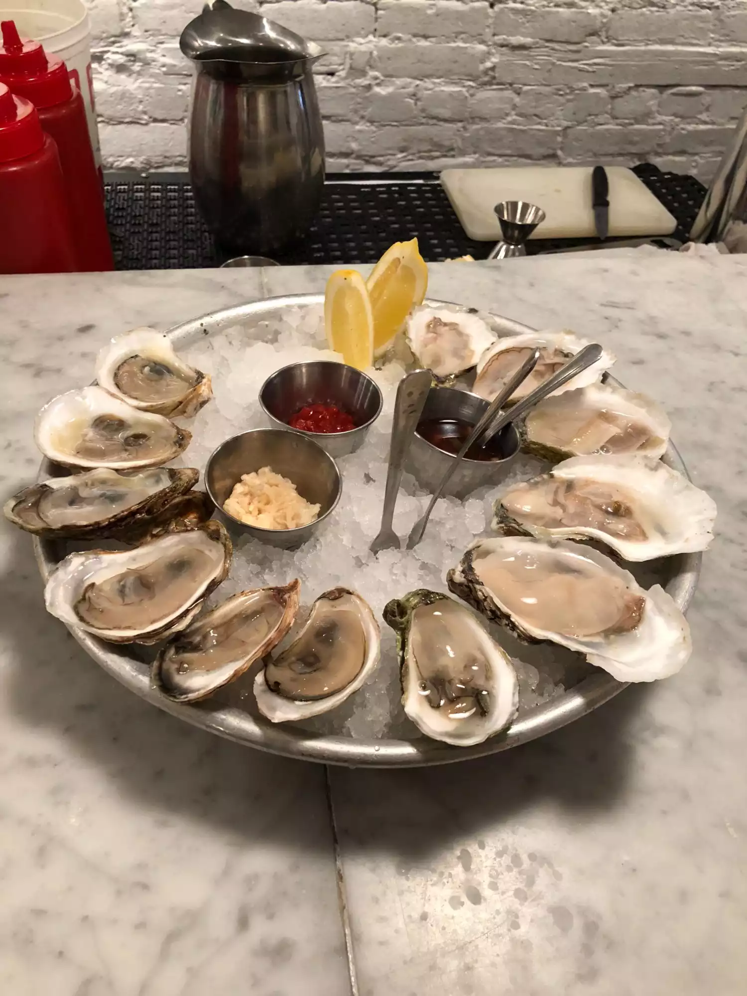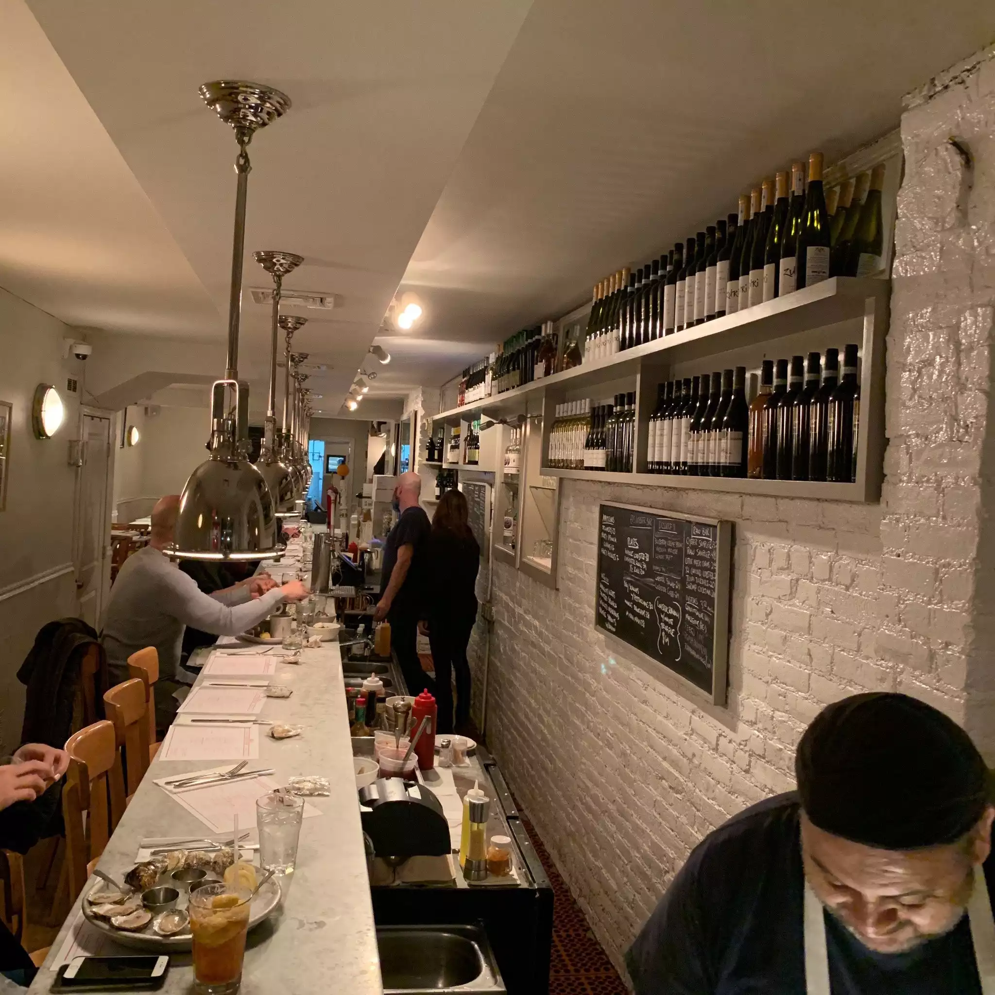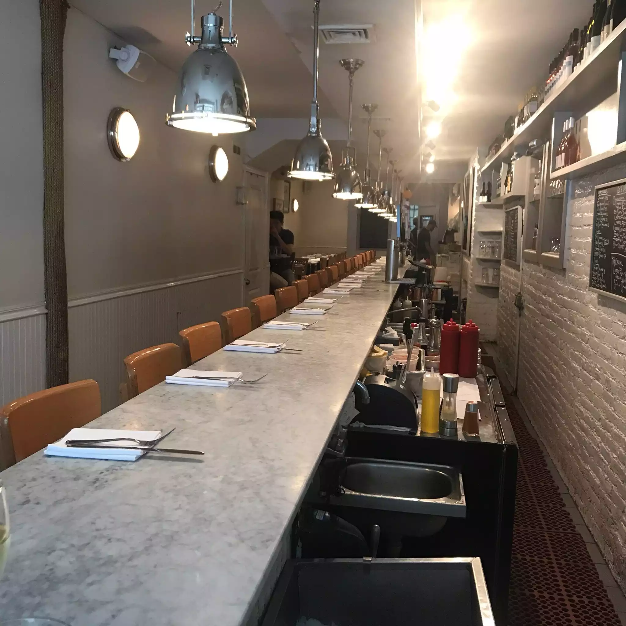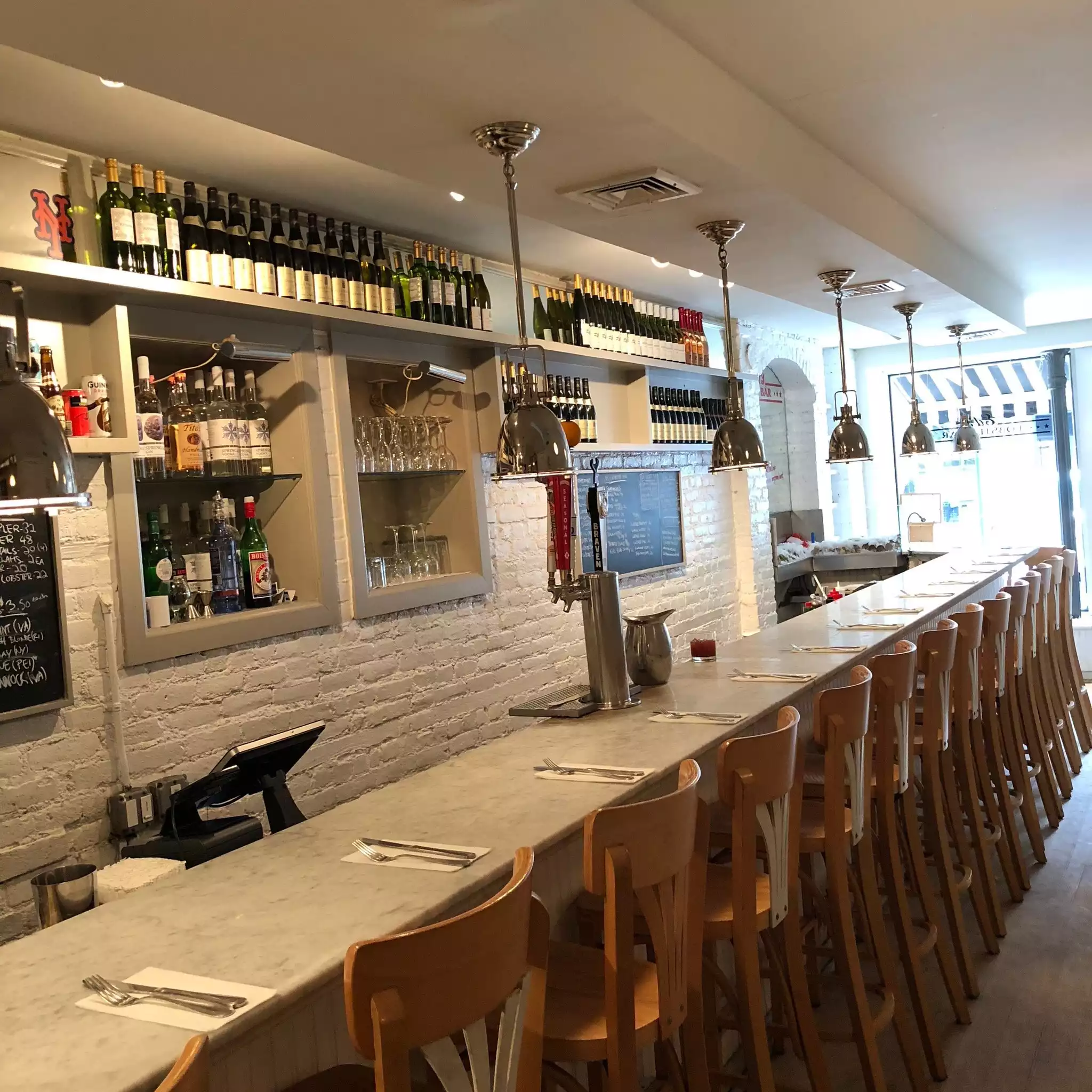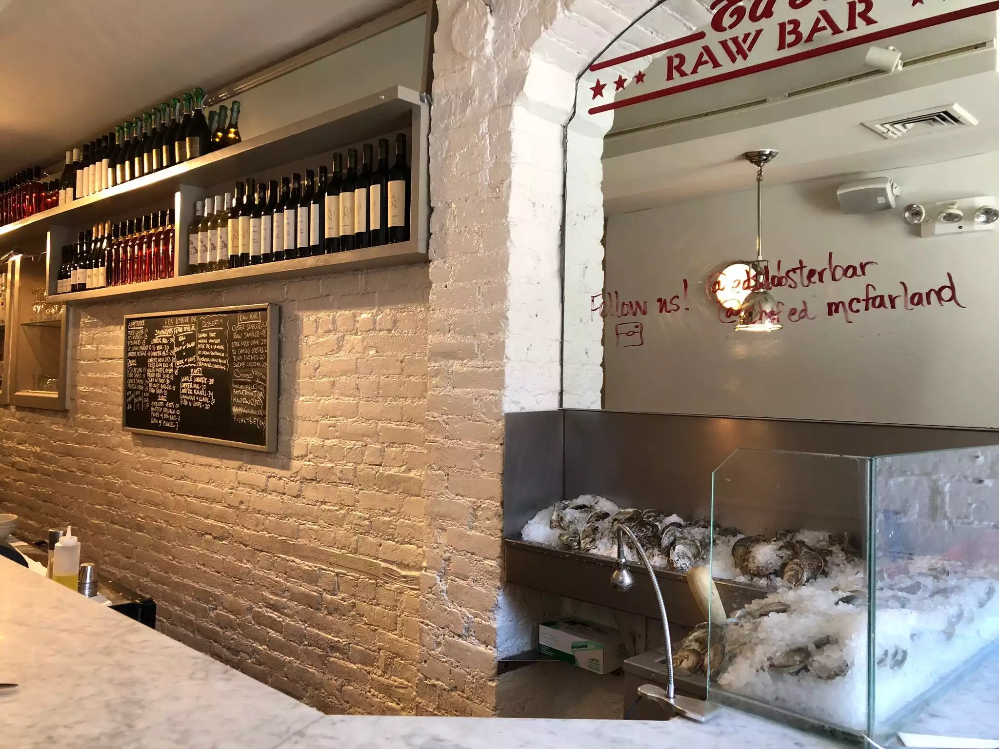 We planned a dinner at The Chef's Table Brooklyn Fare that evening and decided to stop at this spot just around the corner from our hotel for lunch. It hit the spot perfectly. The lunch menu is limited but fortunately the oysters are still available. They were extremely fresh and perfect with nothing more than their own juice. We also had a lobster roll and though a little pricey, it had enough meat and the bread was good quality. A heaping portion of fresh greens accompanied the roll. A couple beers and we were supremely content. Staff is friendly and the overall feel is that of a fav local hang out. Not fancy but good quality.