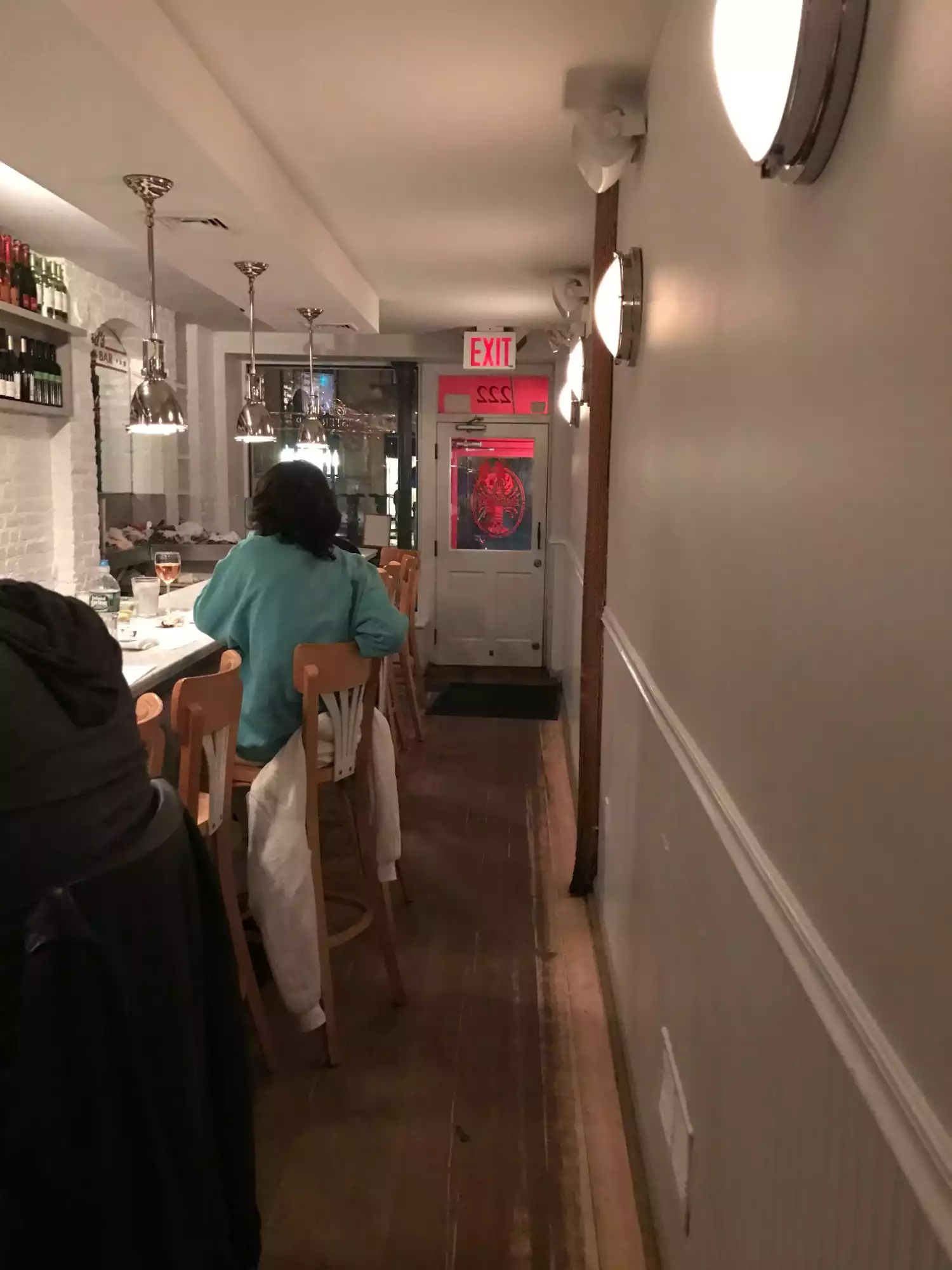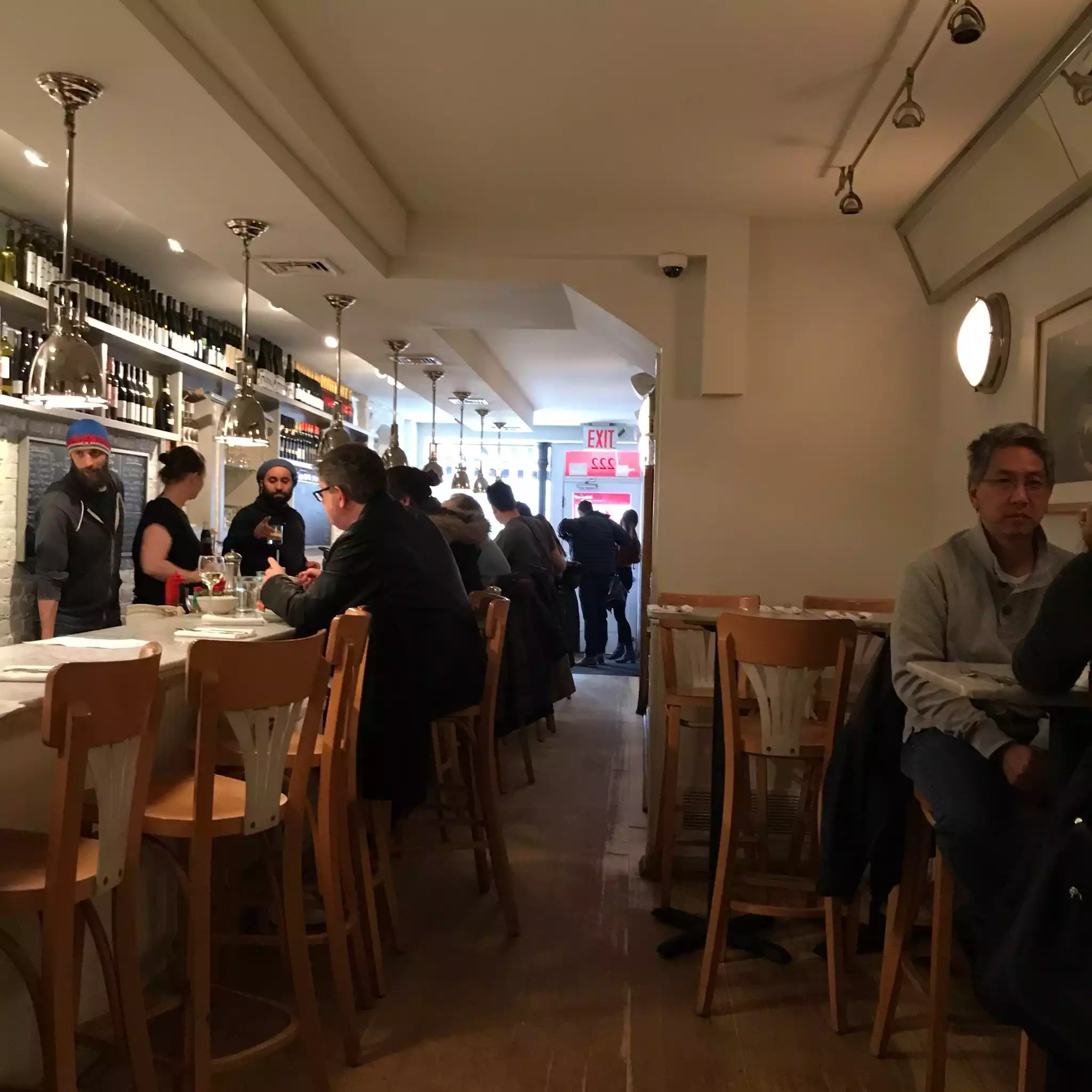 Long and narrow room with plenty of seating at the bar, maybe 10 small tables towards the back. The staff were friendly and casual. The available wine choices were good. The lobster roll was very good and on the pricey side. Great for lunch.