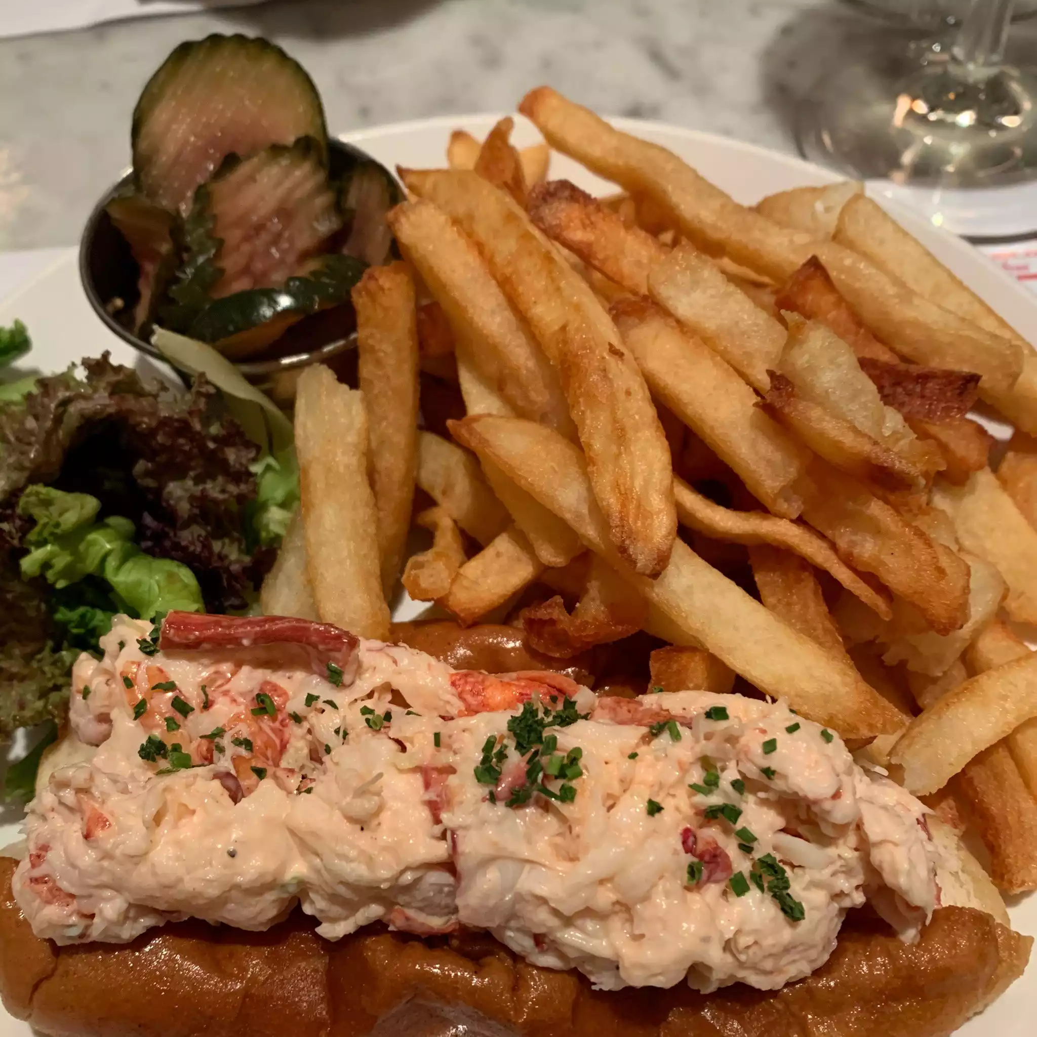 Arguable one of the best lobster rolls I have ever had. Moist flavorful and tons of lobster. Great service and nice wine selection.