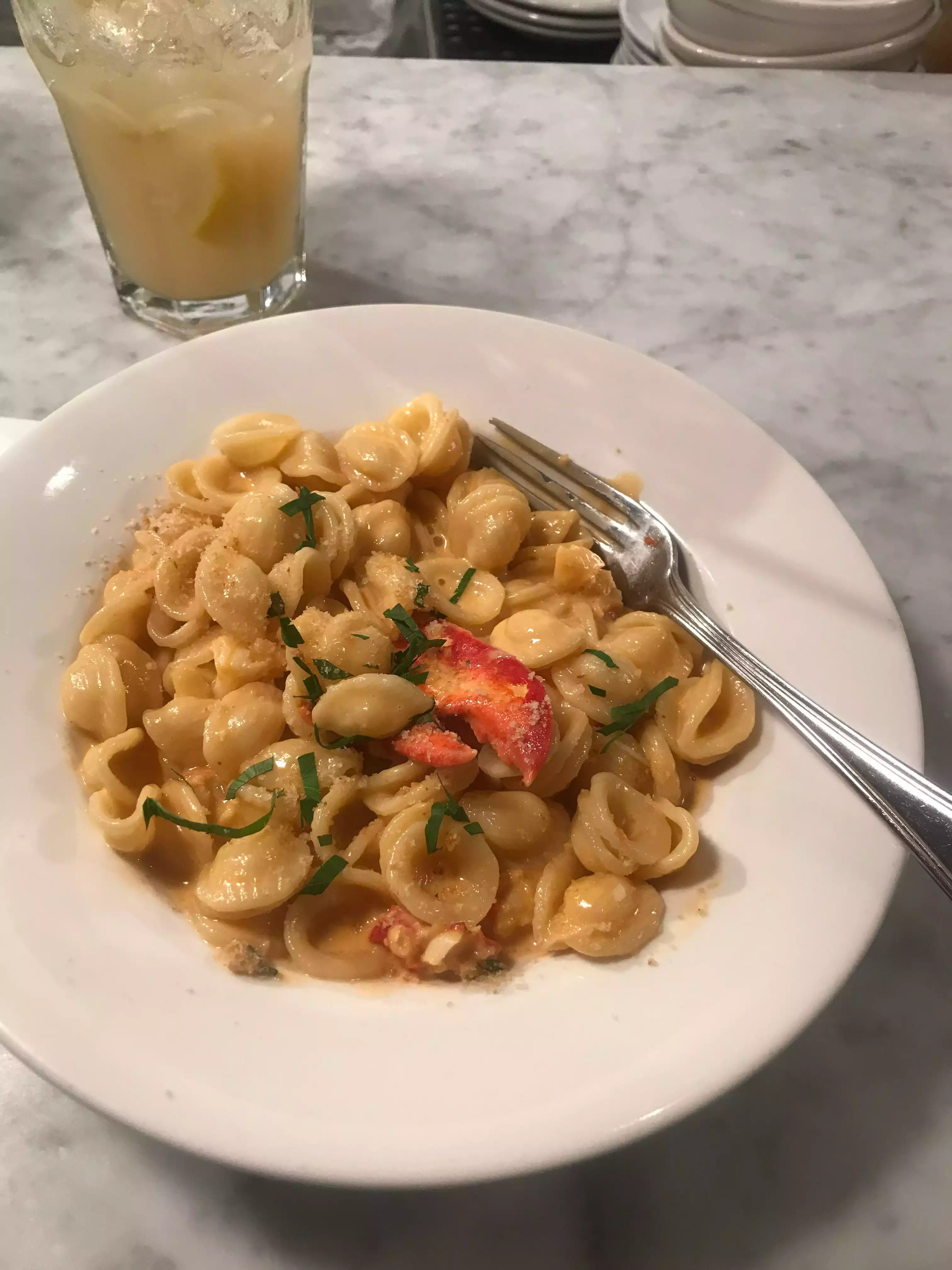 Entering at 1PM it was quite empty. However, I did secure a reservation beforehand. Good thing too bc within minutes, it became full. Seating at the bar is a bit uncomfortable - my knees kept hitting the bar. Lemonade was made to order and it was refreshing. They seem to cater to wine and mixed drinks. Shrimp cocktail was HUGE! And their own cocktail sauce seemed fresher than the jar. Lobster and Mac and cheese was a bit disappointing. Pasta in sauce with a piece of lobster meat topped off. One piece had a lobster shell! A bit pricey for me: cost $49 but it is Manhattan and seafood. Give it a try.