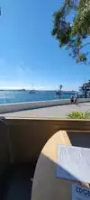 We sat here for a quick brunch and asked to be seated next to the window , which beats by far any sitting without a view . The spot has great views of the promenade and bay . Food was ok but not great - we ordered the Avocado toast but it didn’t include fresh avocado as we expected but the commercial guacamole you get in the stores . We ordered coffee and weren’t offered refill . Other than that the staff was very accommodating of all special dietary needs and the food is OK .