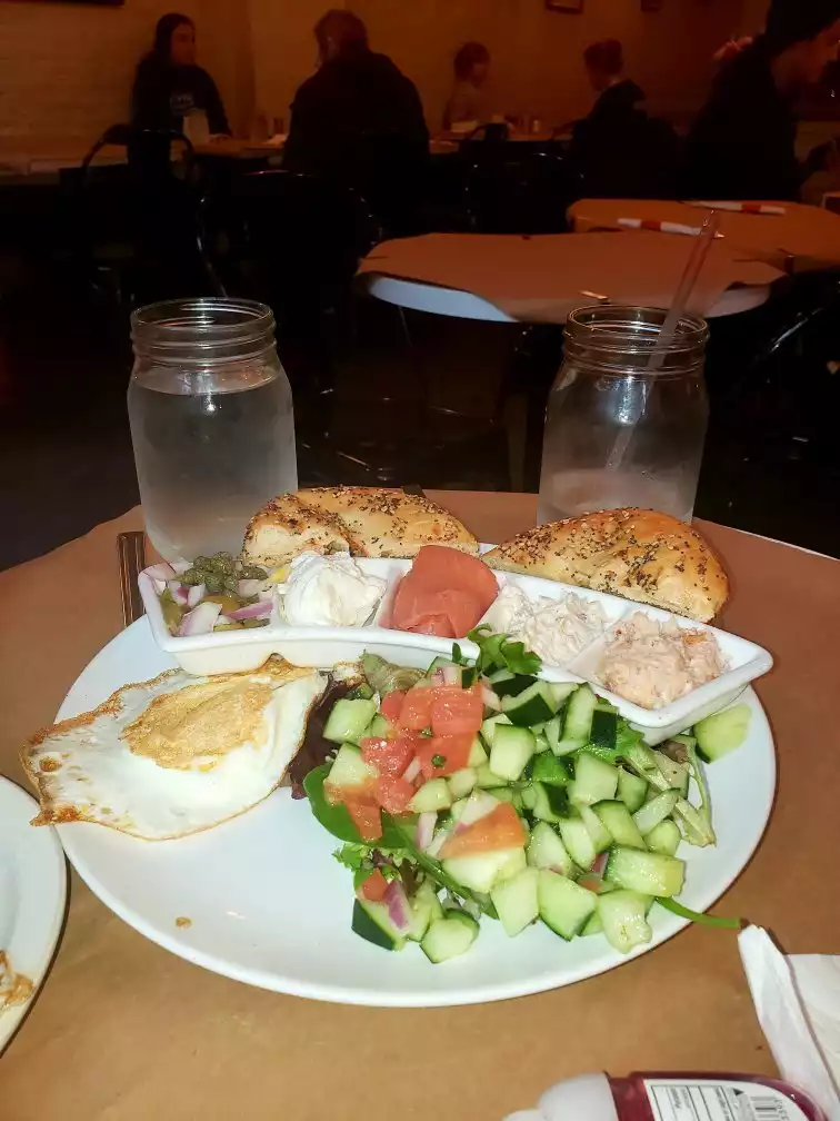 I had brunch here with a relatively large family group (eight people) recently and was really pleased with everything. The restaurant is small, so you might have to wait, but the wait is worth it. We found the food to be really terrific. Our party ordered a mix of breakfast items and lunch items (there is an Israeli flavor to the menu and it is a kosher place). Everyone was very impressed by the quality of the food. Our server was fine, although a few things were a bit slow (a highchair for one member of our party and milk that never arrived), but overall, everyone in our group thought it was worth returning. The food was really good and the choices were great.