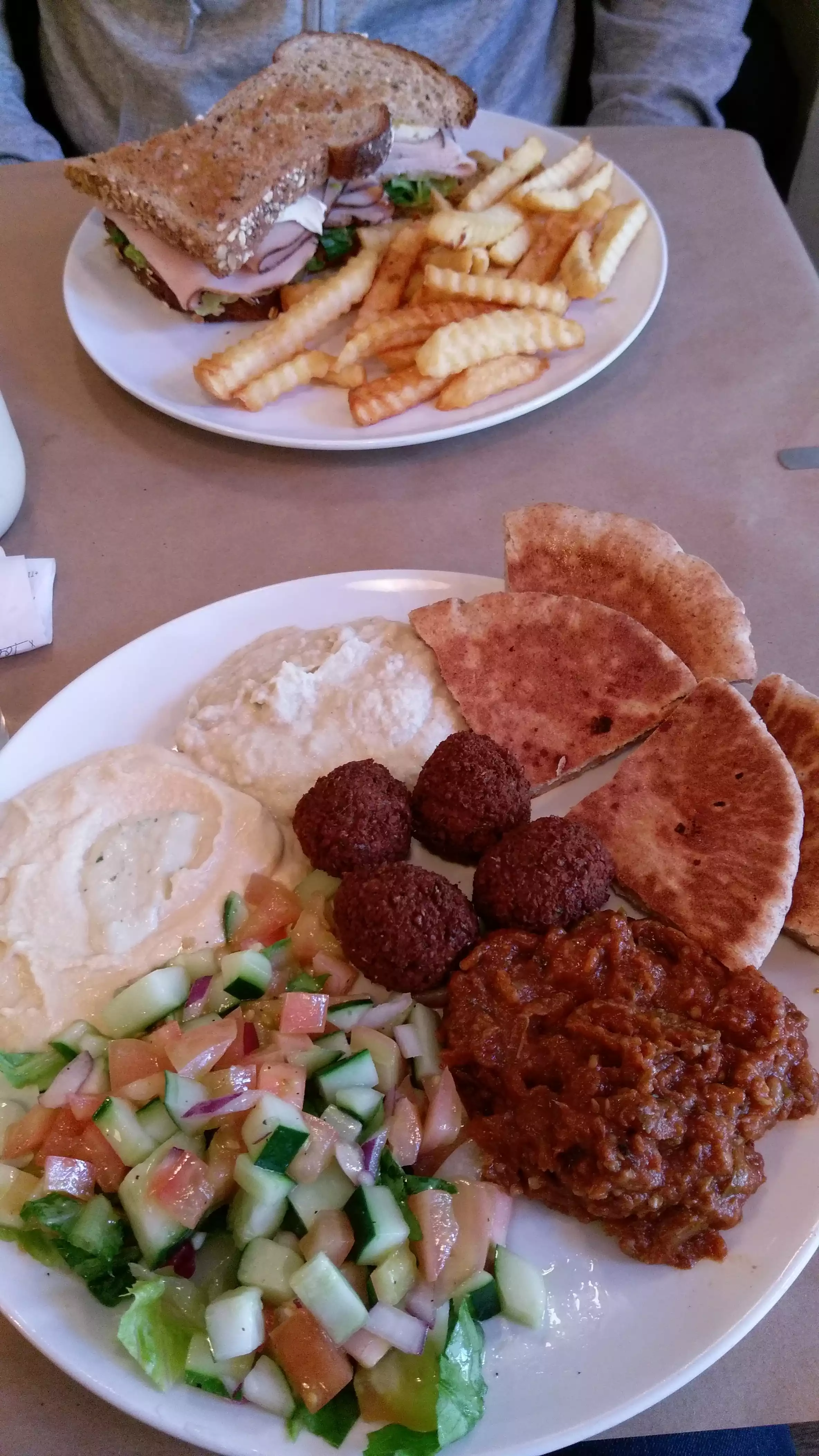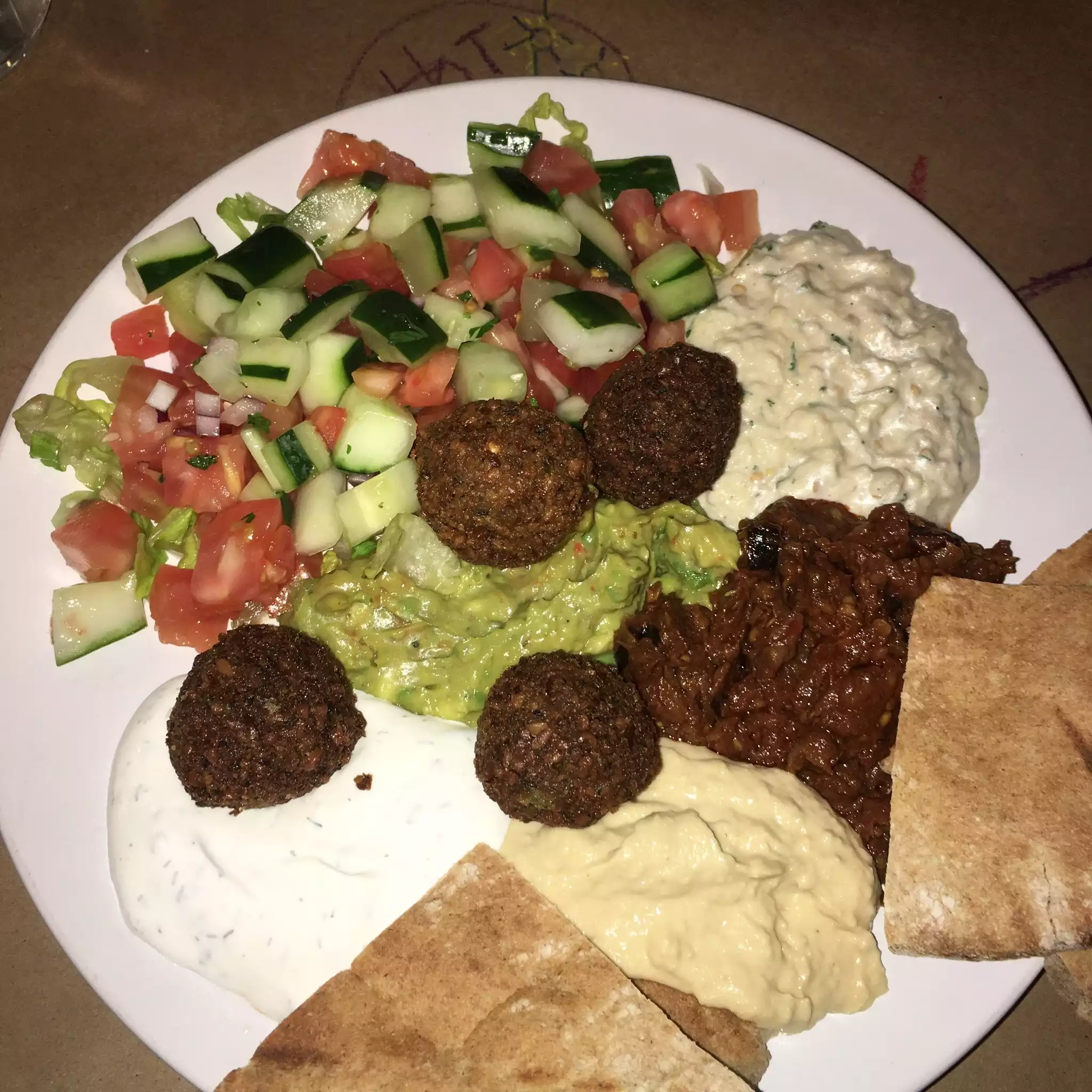 Excellent service by the wait staff, except the barista who kept being on her tablet who was not helpful when we asked for a spare utensil. The recommended dishes was so delicious, we wished we could’ve brought it home but we didn’t. Very fresh non greasy falafel and the side dishes such as the baba ghanoush was divine! I am a foodie who knows good food and this small hole in the wall is definitely one of them. Healthy and delicious. Simply divine. Will definitely return. There offered something for everyone! And everyone was happy with their dish. Sold.