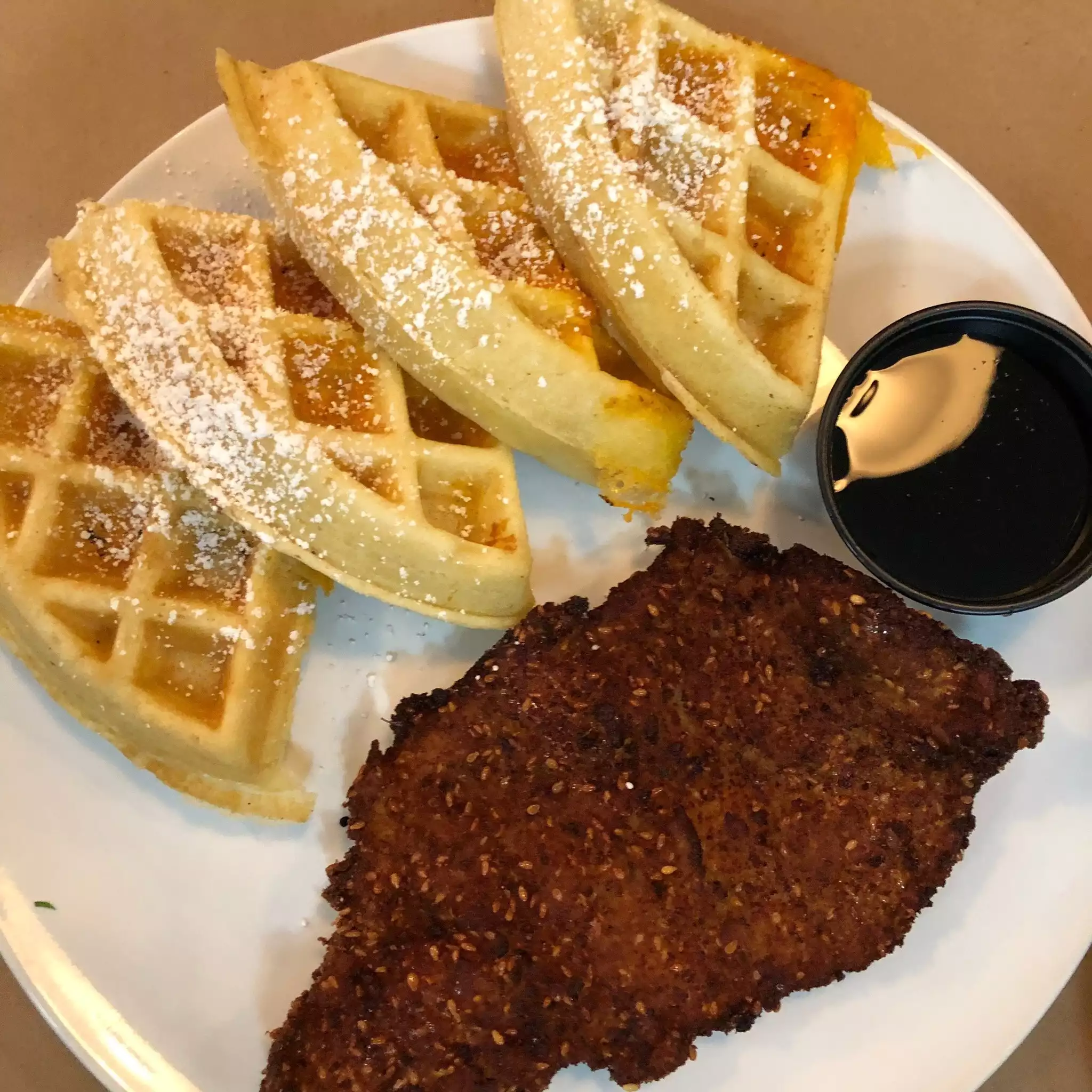 Chicken Schnitzel and Waffles. With Spicy syrup. Excellent meal and coffee was good too. Seating is a little tight.