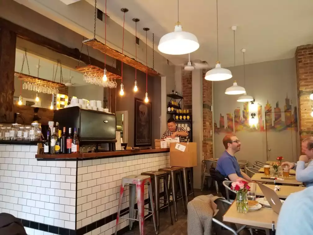 Food is really good and it’s a great non-diner place to go for weekday breakfast/brunch. My fav is the green Shakshouka. Coffee is usually fresh and very good as well. It is a small restaurant but they do not have enough staff. Everyone is really nice and no one rushes you. That said I’ve had to ask for things (more coffee, the bill, etc) several times before they happen. That said I’ve been several times and will go back.