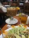 guacamole, chunky and fresh. very good if a tad under species. chips, too thick but ok. nice sauces on table. whole red snapper grilled HUGE and nicely cooked, but over-salted. ask for less salt. nice garlic sauces on side. the rice and refried beans were a waste. like from a can, both, with no taste, no seasoning on the sides. hated the sides and didn't eat. skip the sides and have grilled red snapper and guacamole.
