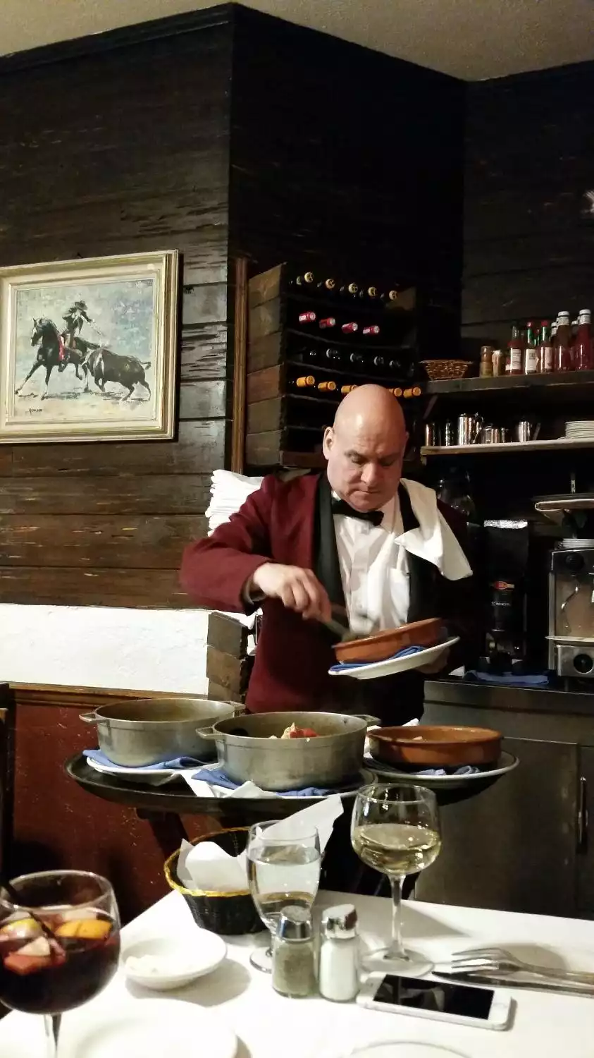 The friends I met for lunch were long time patrons of El Pote. So this was a new experience for me, although I have passed it a million times. The service is very attentive, small but not cramped. We all ordered from the lunch special menu. My veal was tender and just the perfect size for lunch. Great conversation and laughs in a busy non rushed setting. I was surprised that a Tuesday could be so busy at lunch in this place. I will be back for dinner as I hear the paella is great.