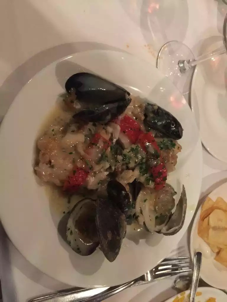 Atmosphere was beautiful. I loved the photos and the decor. Mussels with Garlic Sauce were delicious. Salad was good but we would have preferred oil and vinegar on the side. Broiled fish was good - we had branzino. Did not appear to be broiled but it was tasty. We definitely have to come back to try the Paella