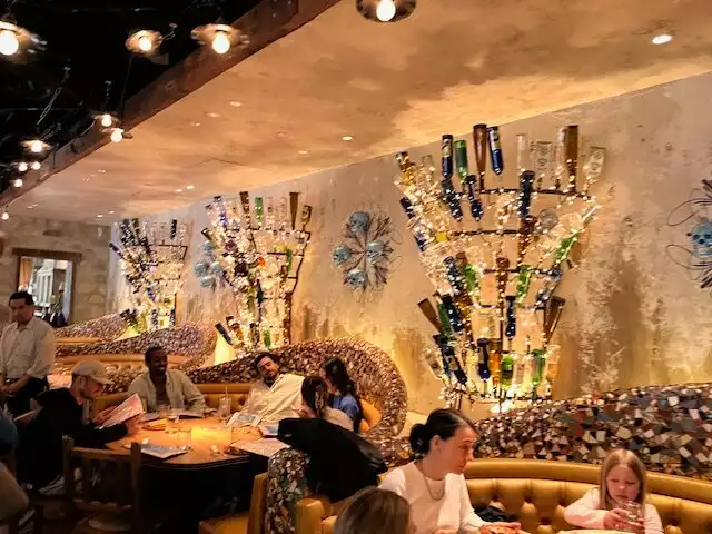 We came here with friends, it was our first night in NY. I was surprised by how big the restaurant was. Upon walking in there was a large bar area which was pretty full for a Wednesday night and past that was the restaurant. It’s really quirky inside with light sculptures made out of bottles and tile mosaics, it has a modern trattoria (I know that’s Italian, but that was the vibe I got) feel. There were 8 of us, 3 adults and 5 kids. They accommodated us easily (we did book), our waitress wasted no time in introducing herself and familiarising us with the menu. Drinks arrived quickly, kids meals were delivered fast and everyone enjoyed their meal. The food was fresh and there was plenty of it, and lots to choose from. Great options for kids. The guacamole was delicious and has great fresh flavours. My friend had the fish taco and I had the beef short rib enchiladas, both delicious. The kids finished off with some churros and they enjoyed them. There’s also a photo booth in the restaurant and they had fun with that too. We’d come back.