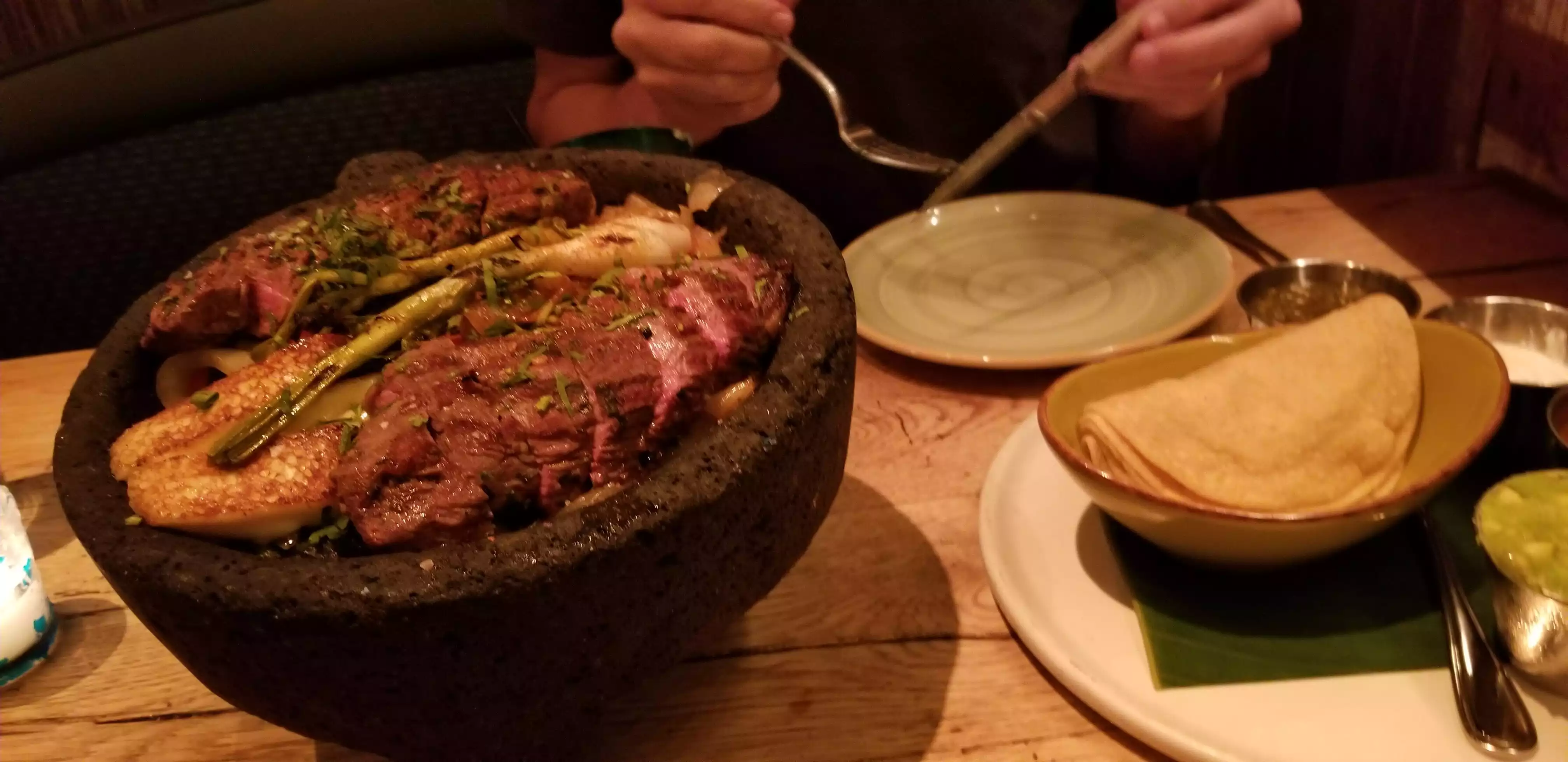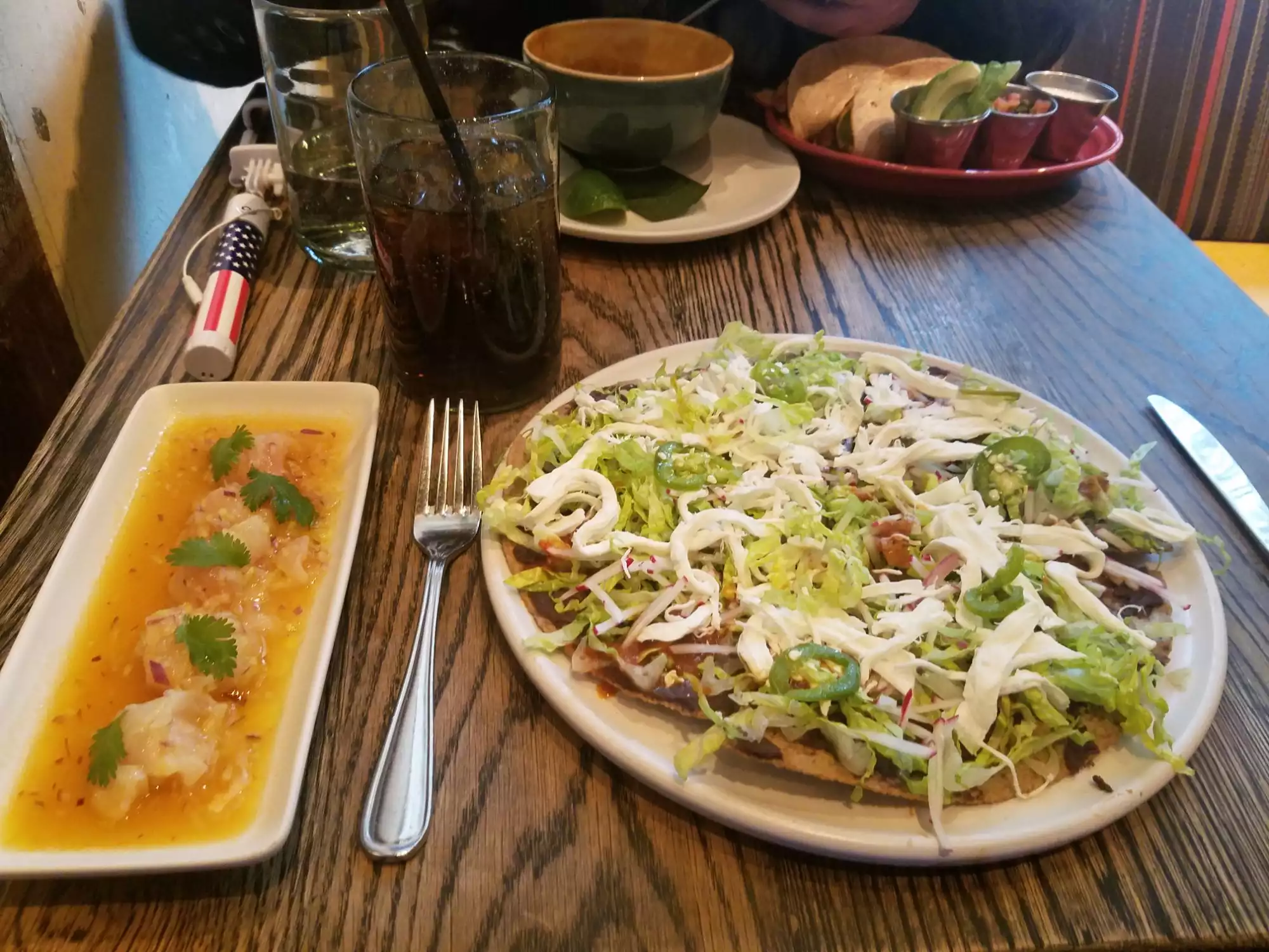 This restaurant is definitely a very place to spend an evening with friends or co-workers or take a date to. It has a large bar area where people drink and talk while standing, and there are areas where there are table, and you can have a dinner and even a quiet conversation. I have to say that this is the only restaurant where I saw a drink menu with quite a long list of Tequilas and Mezcals . And besides the drinks, the food menu looked very good, and the food itself tasted even better. Macho Nachos is a good choice to share as an appetizer, Duck Mole was excellent as a main course. Our waiter was very knowledgeable about the food, could explain how each dish was made, and was able to tell us what dishes were gluten-free, and which one were not. This was an excellent place that I highly recommend visiting.