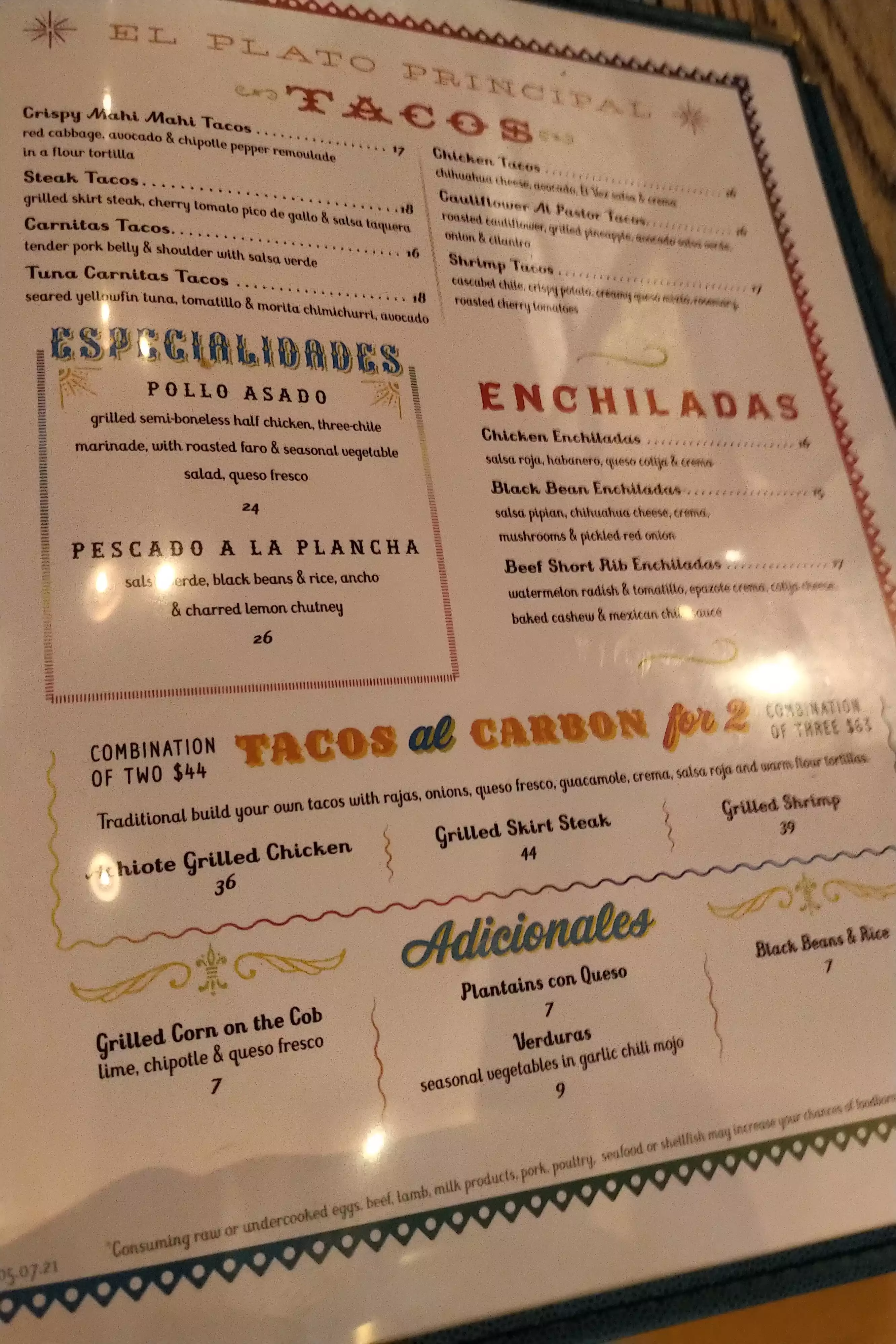 I’m a Texas girl so to find GOOD Mexican food outside of Texas/New Mexico..... The margaritas were good, table side guacamole was average. However, the steak tacos were absolutely amazing! Fork tender perfect chargrilled yum!!! The chicken enchiladas were different but not bad just not authentic. The chirps with chocolate sauce were addictive. If your craving Mexican food it do.