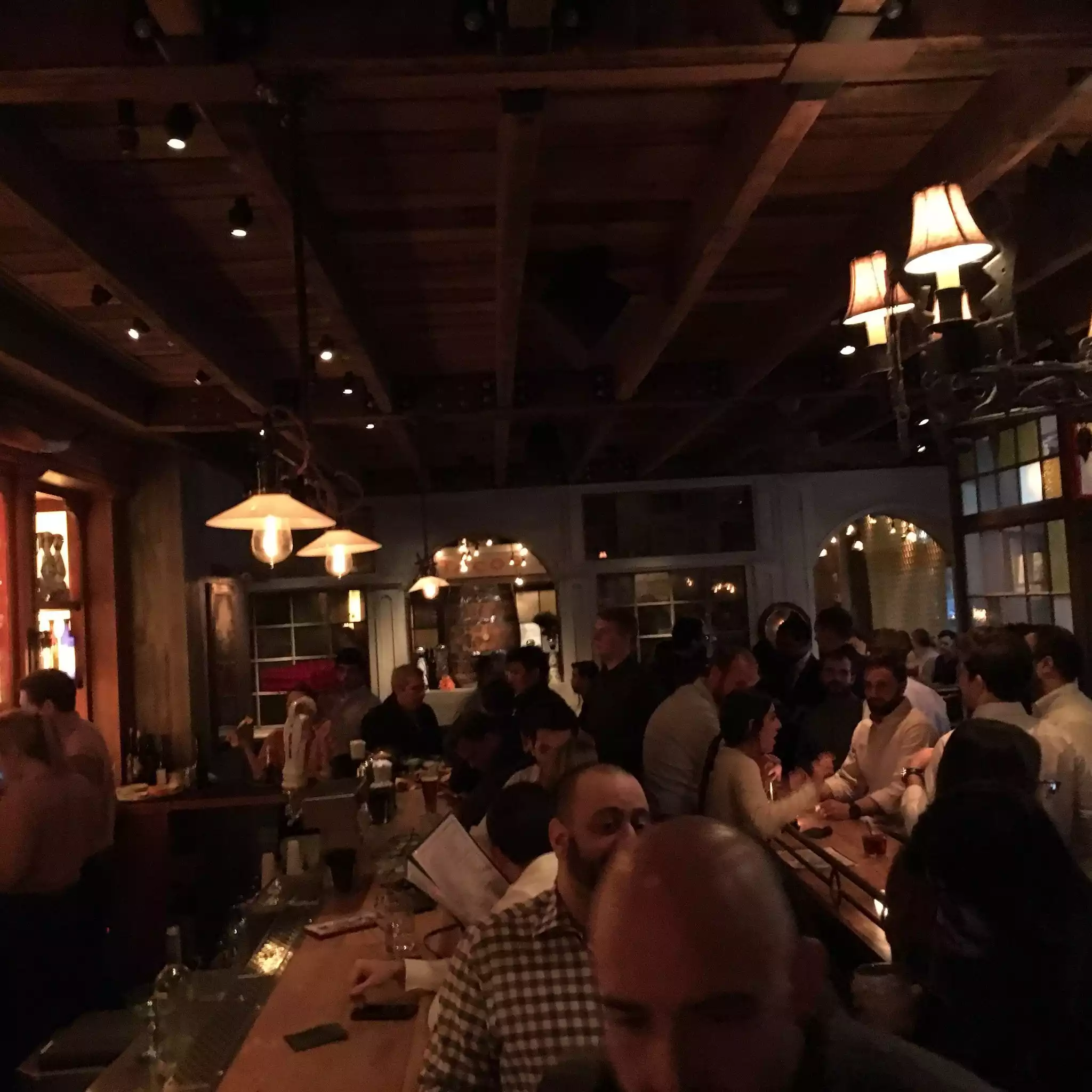 Stopped in on a Friday night. Made reservations 45 minutes ahead of time. Was visiting One World Trade Center and found it at the last minute. A very lively place to grab a drink or dinner. Bar area was very loud, but we managed to get a table in the back left that allowed our party to talk and hear each other. Food was fantastic. No complaints!