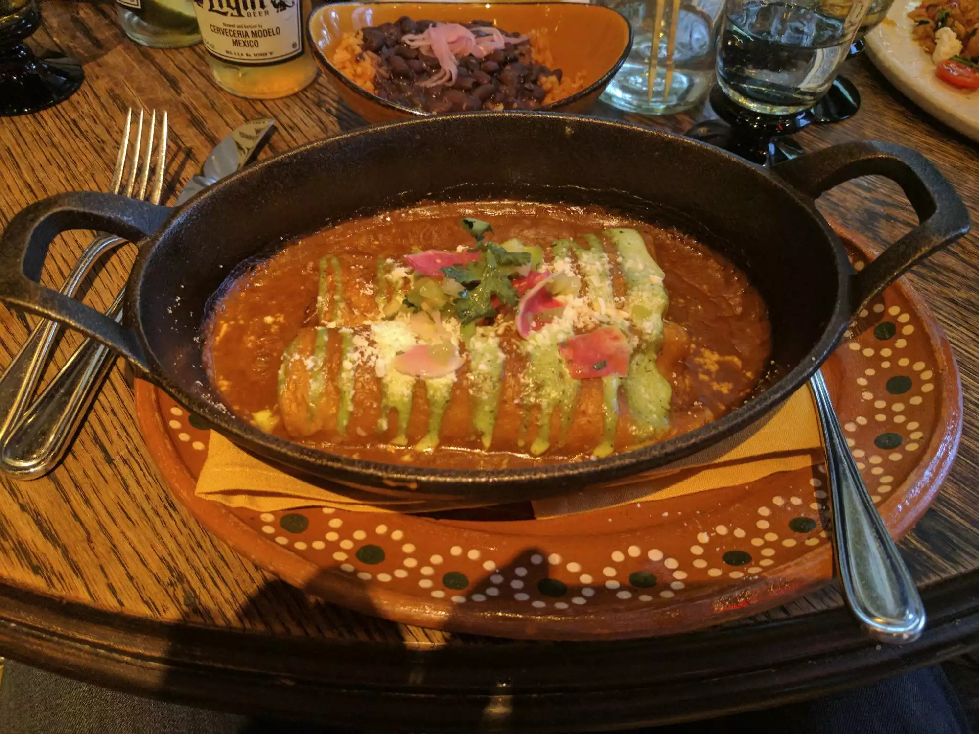 The micheladas are the best I've had in the city. They do it proper. The verduras were cooked perfectly as were the plantains. Holy moley! The Tito Santana guacamole! I got the short rib enchiladas. The service was great. As far as higher-end Mexican food goes, this is worth the money.