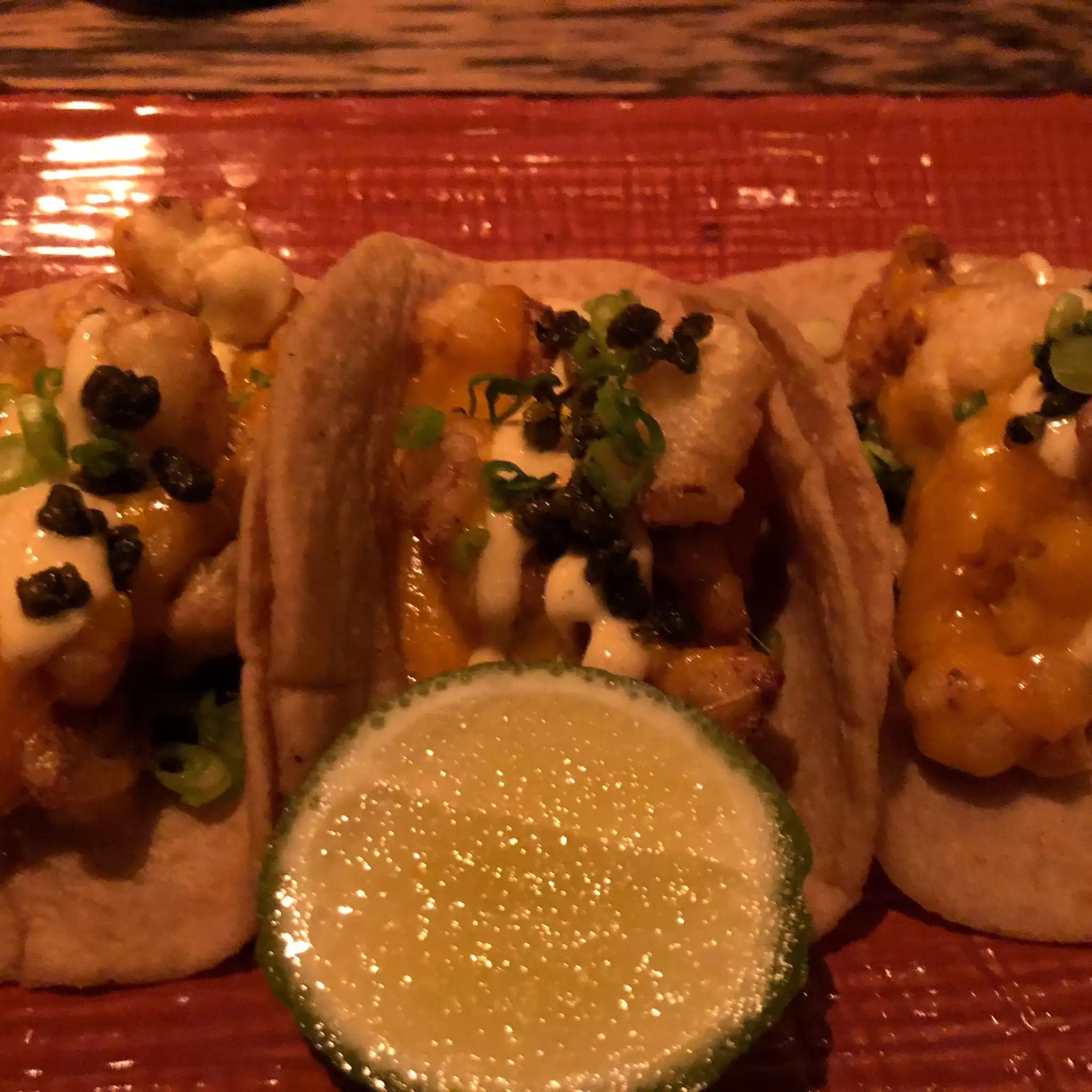 The nachos were out of the world ! Loved the cauliflower tacos and my husband loved his crab enchiladas! Good service and ambience ... was there on a Sunday night but the place was relatively busy