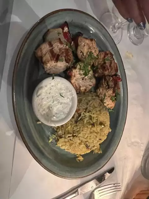 Nice restaurant in new york city. Greek food. People were nice and food was good. Music inside. A good experience in complex.