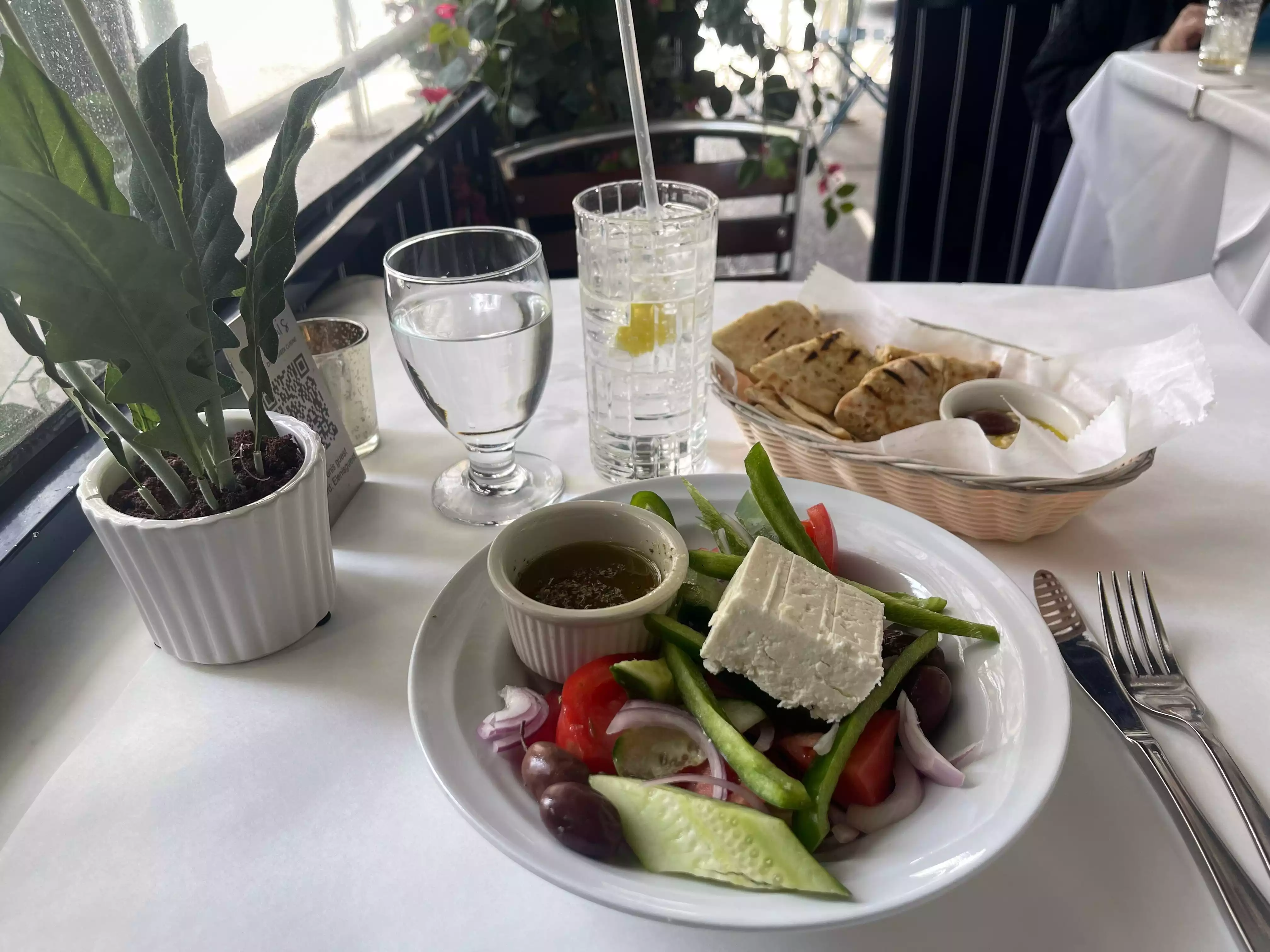 Just stumbled upon Eleni while in the neighborhood for a meeting. I needed a “quick lunch” due to an upcoming meeting. I asked the waiter if this would be possible, which he said yes. I ordered their Greek Salad which was wonderful. The outside seating also great….within clear plastic covering you from the people walking on the sidewalk. Very nice to have and still see the scenery. The service and price also fantastic! I’ll be back!