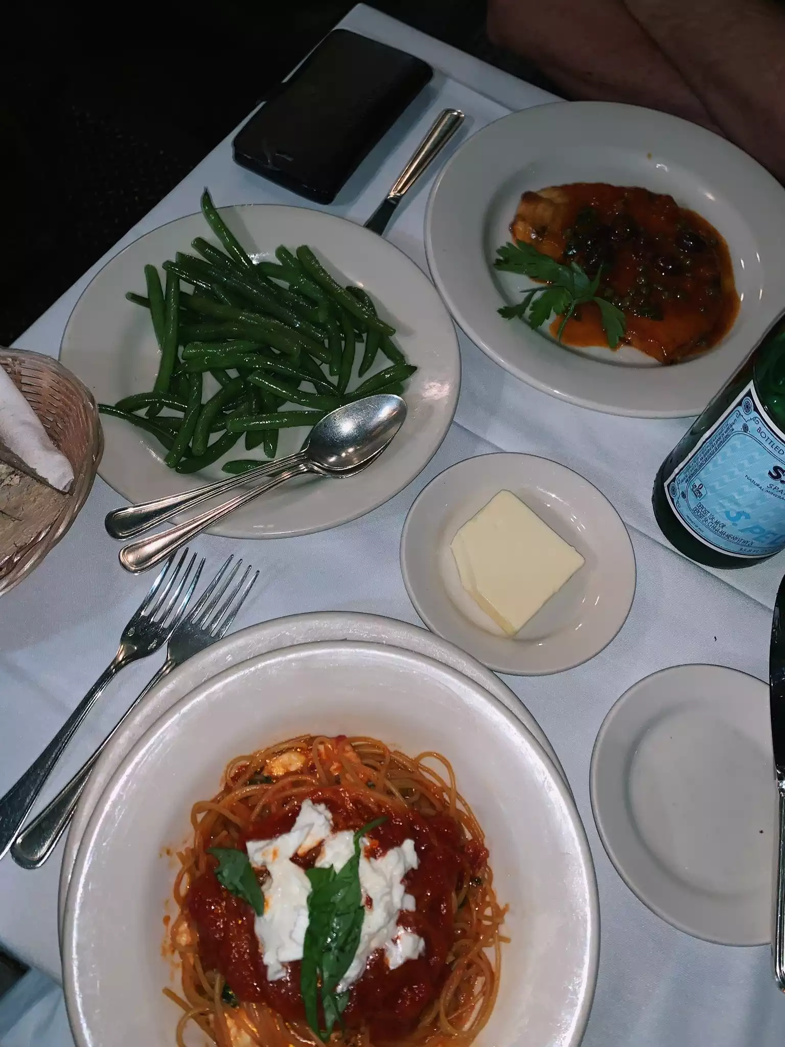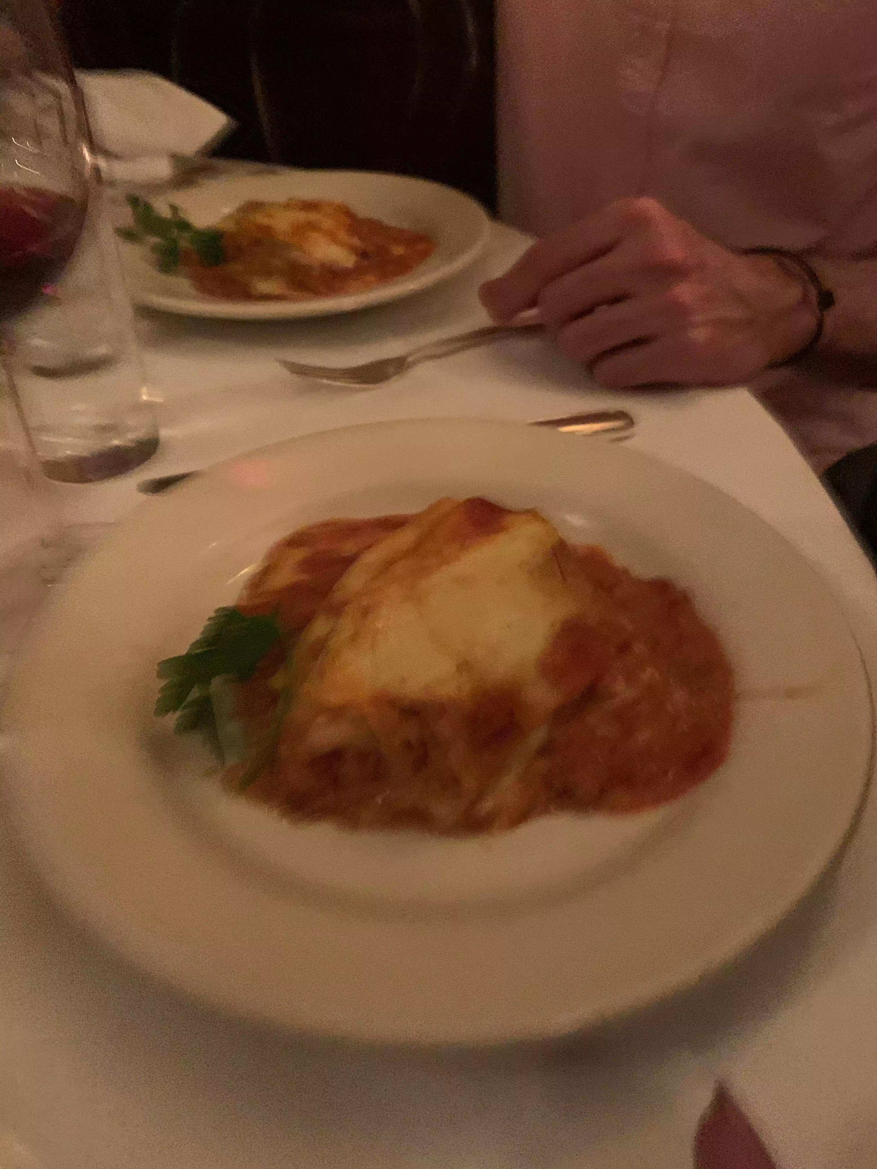 Disappointing. Below average food that was too costly for those deficits. —$17 for six very small clams oreganata. —$34 chicken parmigiana with green beans. —$12 for side of undercooked pasta (not al dente). —$24 for undercooked spaghetti Sugo Di Carne (Bolognese). Slight burnt sauce. Obscene $46 for chicken parm with pasta. Exceptional service. Very nice atmosphere. Won’t go back.