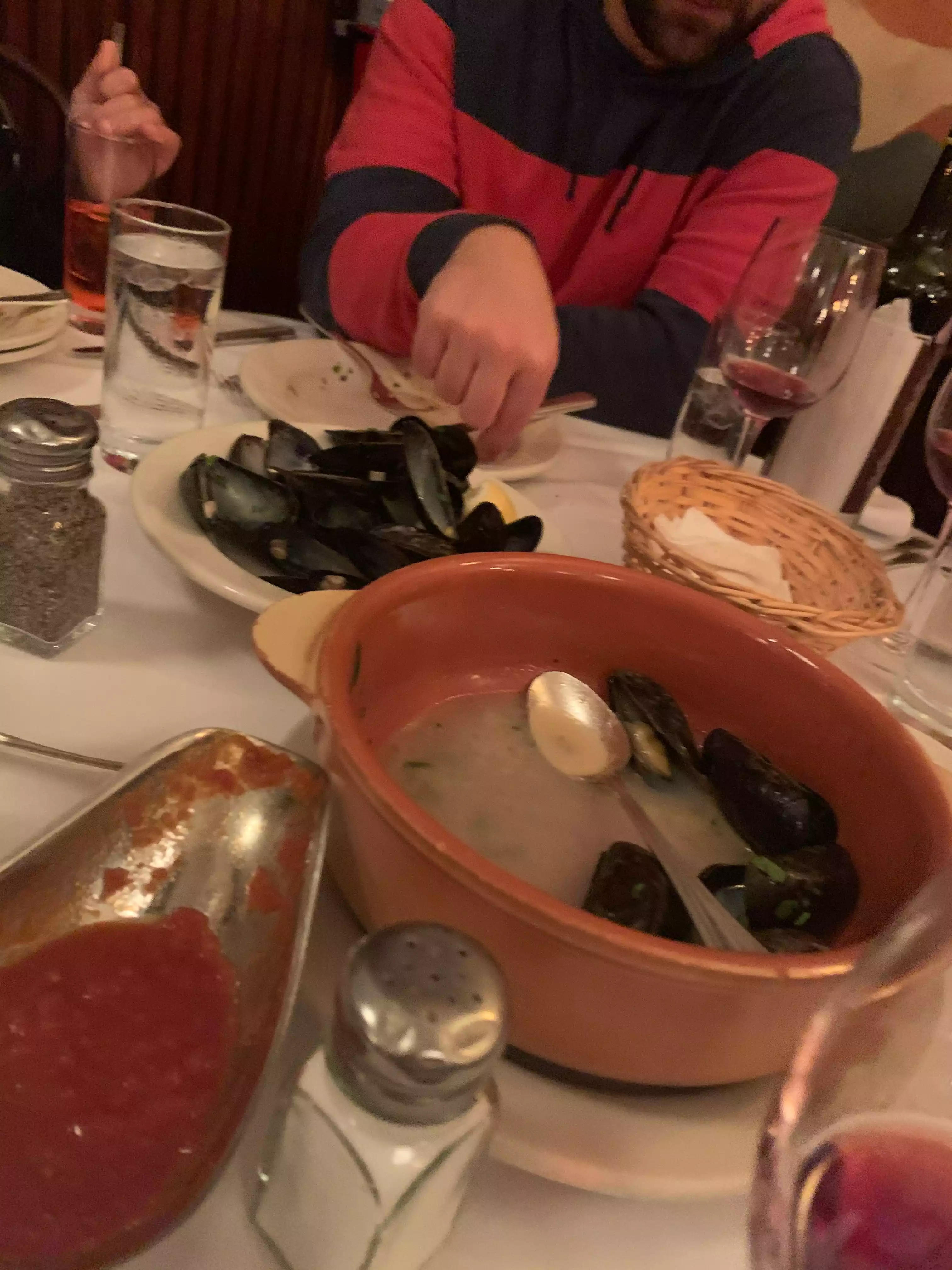There were seven of us at dinner on a Thursday night. The place was packed with regulars, which is always a good sign. Great atmosphere, traditional authentic Italian, and very attentive service (despite the packed house). Highly recommended. Tip: the Osso Buco was excellent.