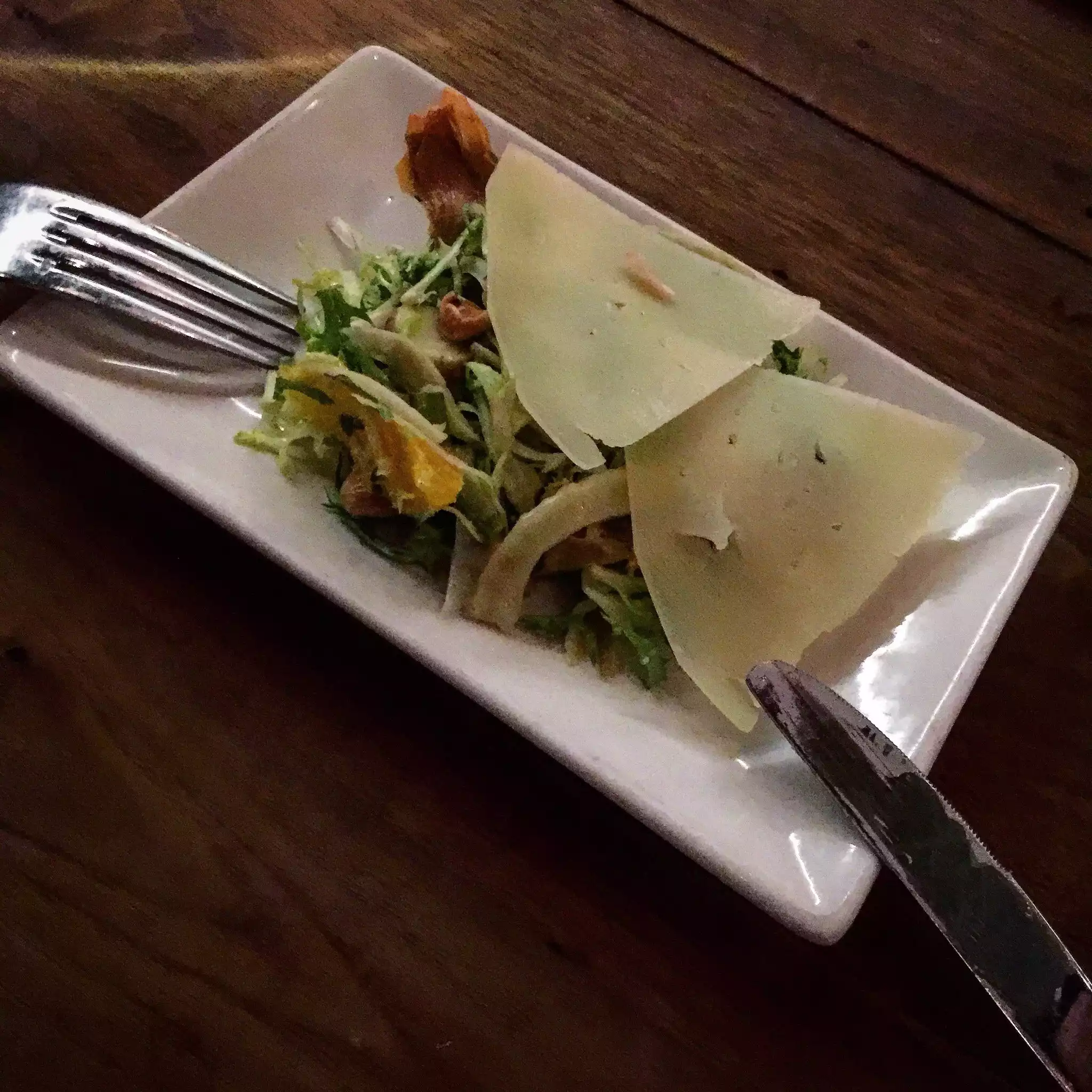 We had an early dinner before heading to the theatre. Small plates are our favourite! We shared empenada, shrimp, Brussels sprouts, patatas bravas, and wild mushrooms, all very flavourful. That and a glass of lovely Tempranillo made us happy and full -- no room for dessert! Attentive service, small pleasant room.