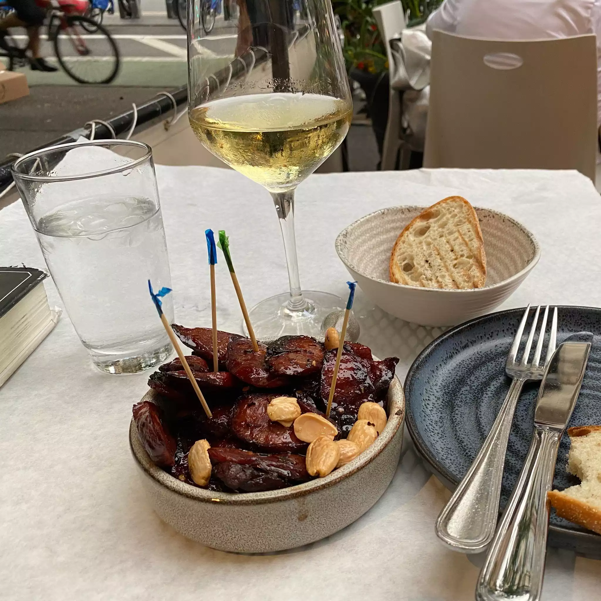 This place was around the corner from our hotel. It’s very cute inside. The staff were very nice. We ordered three tapas to share: Brussel sprouts, empanadas, and calamari. I’m not sure which I liked better because they were all amazing. We will be back!