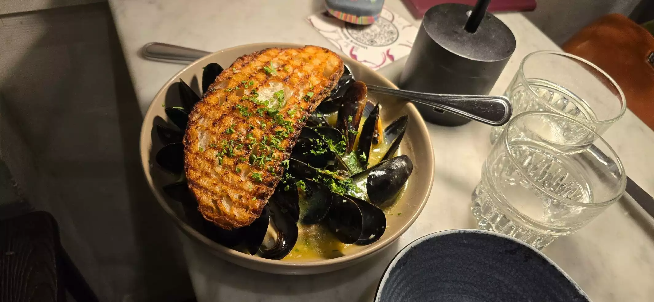 Three of us at dinner and we got 5 plates to share and a few Ciders. Shrimp, brussels, mushrooms and steak were very tasty but small portions on baby skillets. Don't waste your money on the calamari. Nothing special, very ho hum. Wait staff was not warm or friendly, but delivered our asks without mistakes and food arrived quickly. All in all we enjoyed our meal, but the bill was high and we left still hungry.