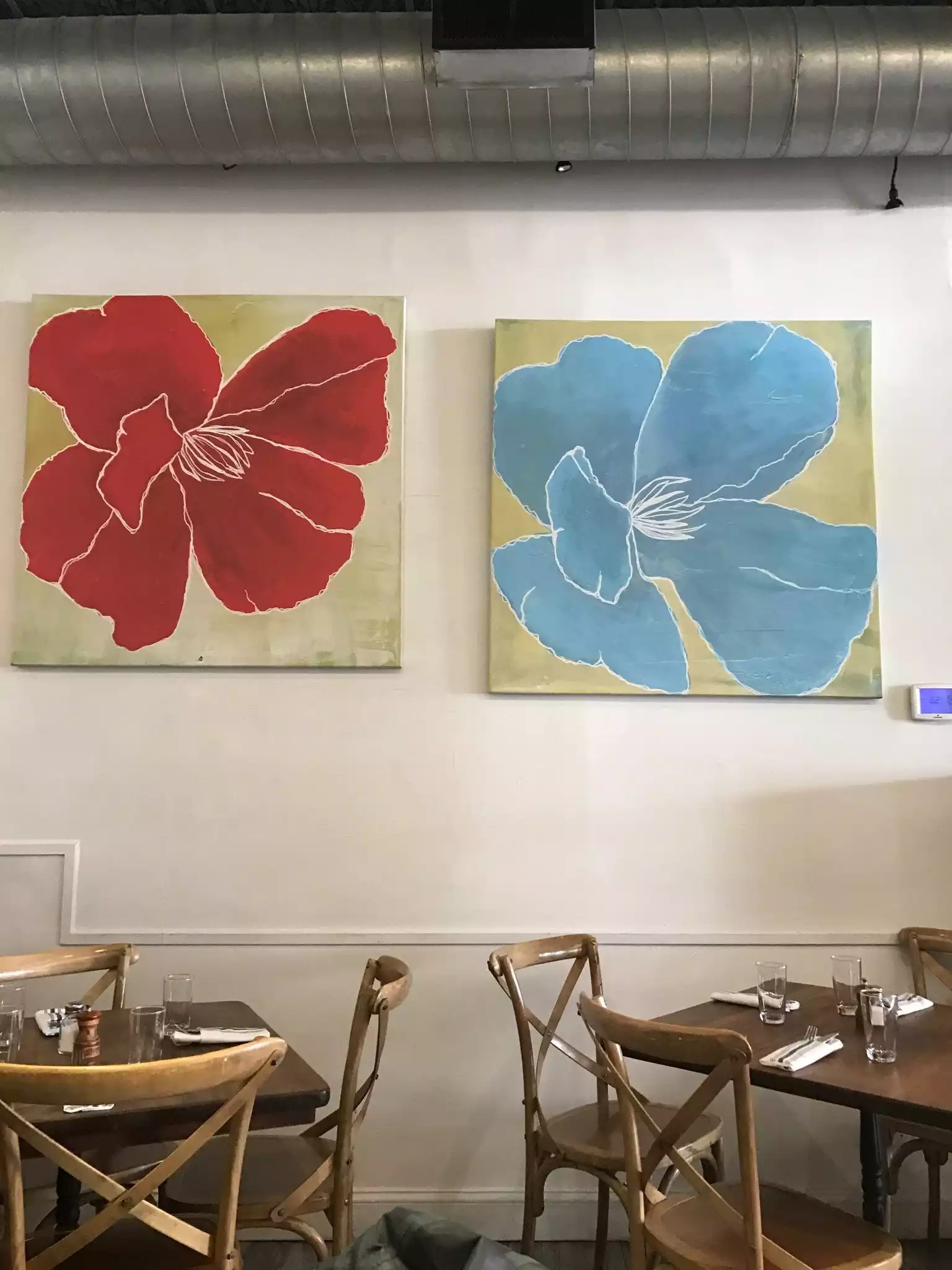 My wife and I ate dinner here and the food was fresh, tasty and good with a bit of a Spanish feel. I had the salmon and my wife had the skirt steak. The food was very good for the money. The interior decor is fun. The waitstaff were very friendly.
