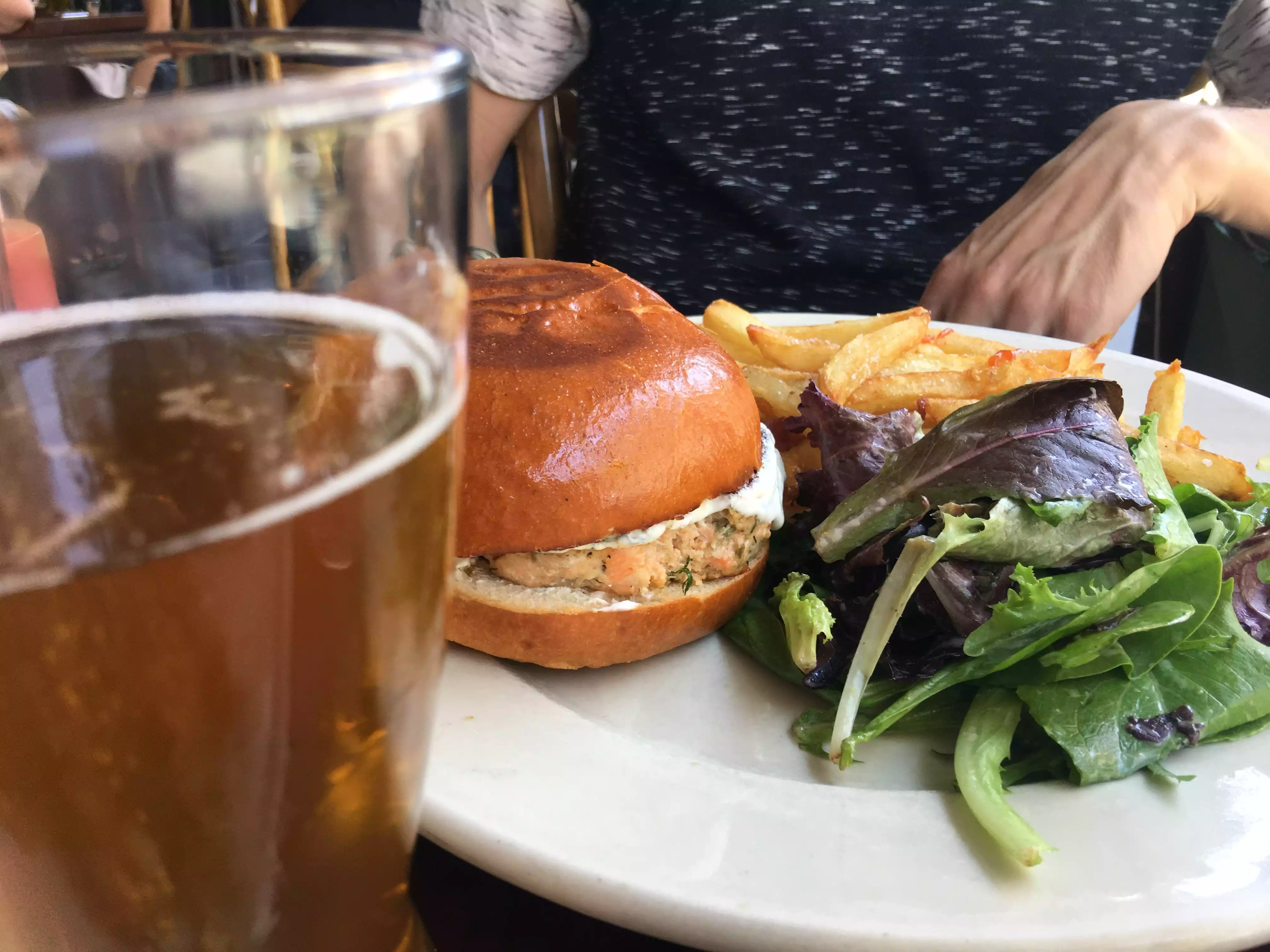 We went walking near our hotel for something new and not a chain and found this place. The menu looked good so we decided to stay. My husband had the salmon burger which he said was very good. I had the drunken mushroom burger. Rarely order burgers anywhere because I'm so often disappointed but this was the best burger I have ever had. Wish I lived closer because I want another...