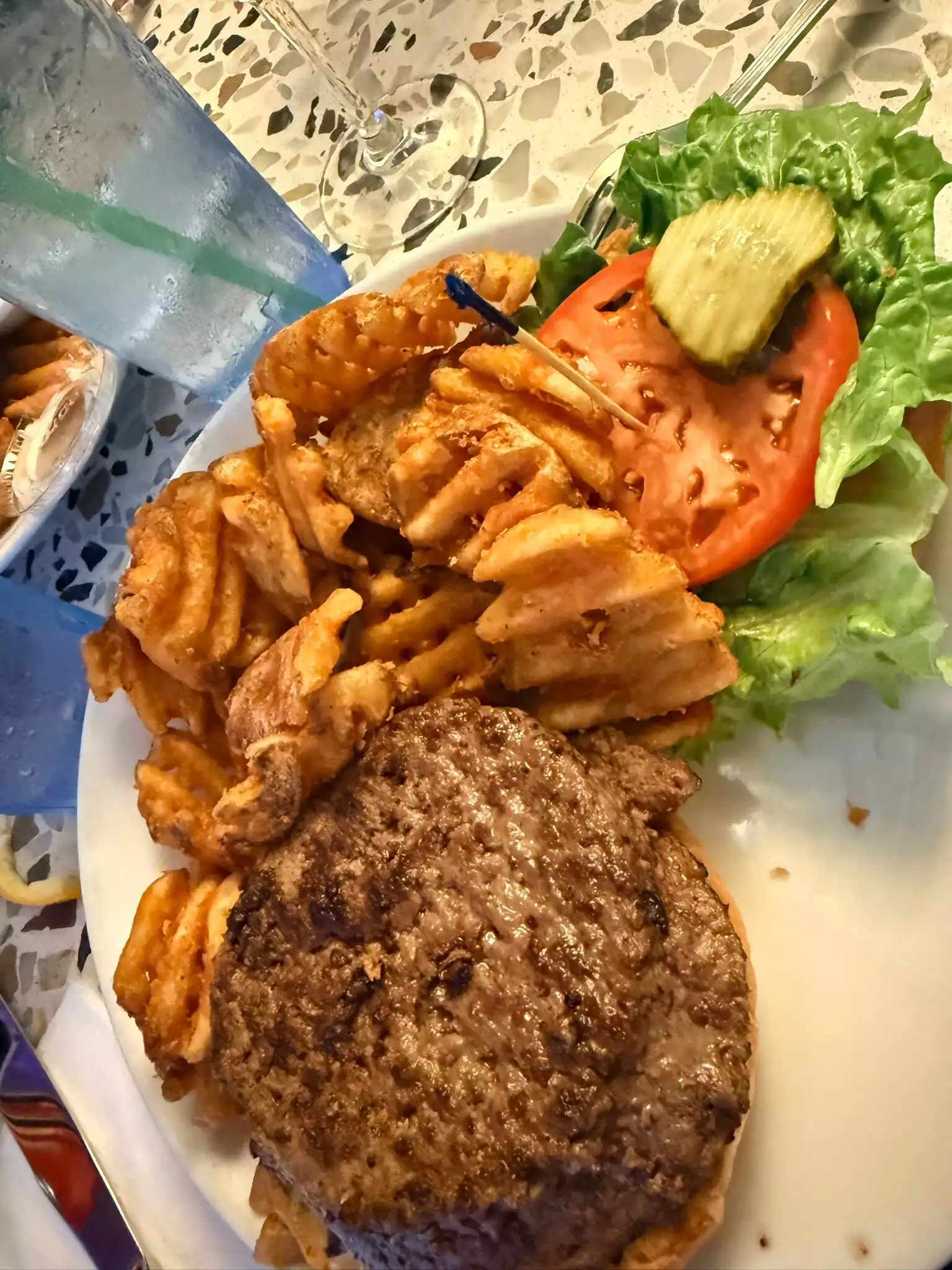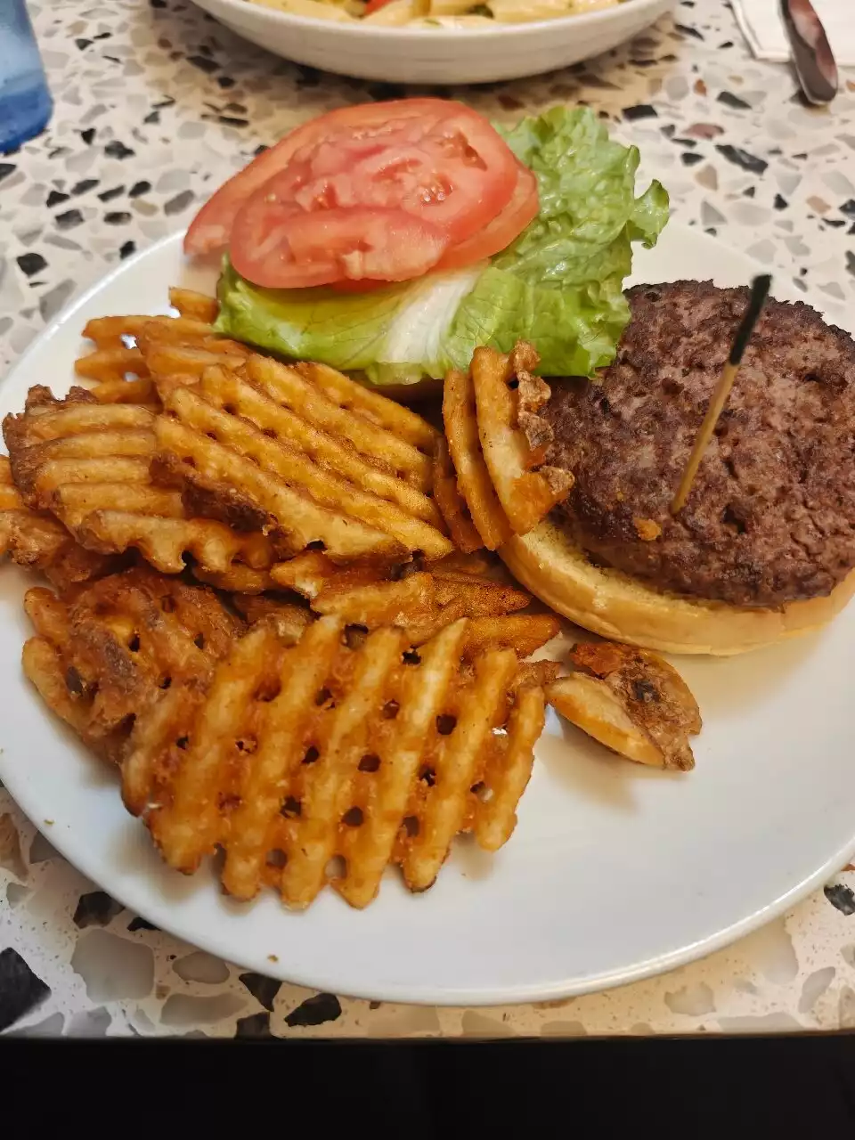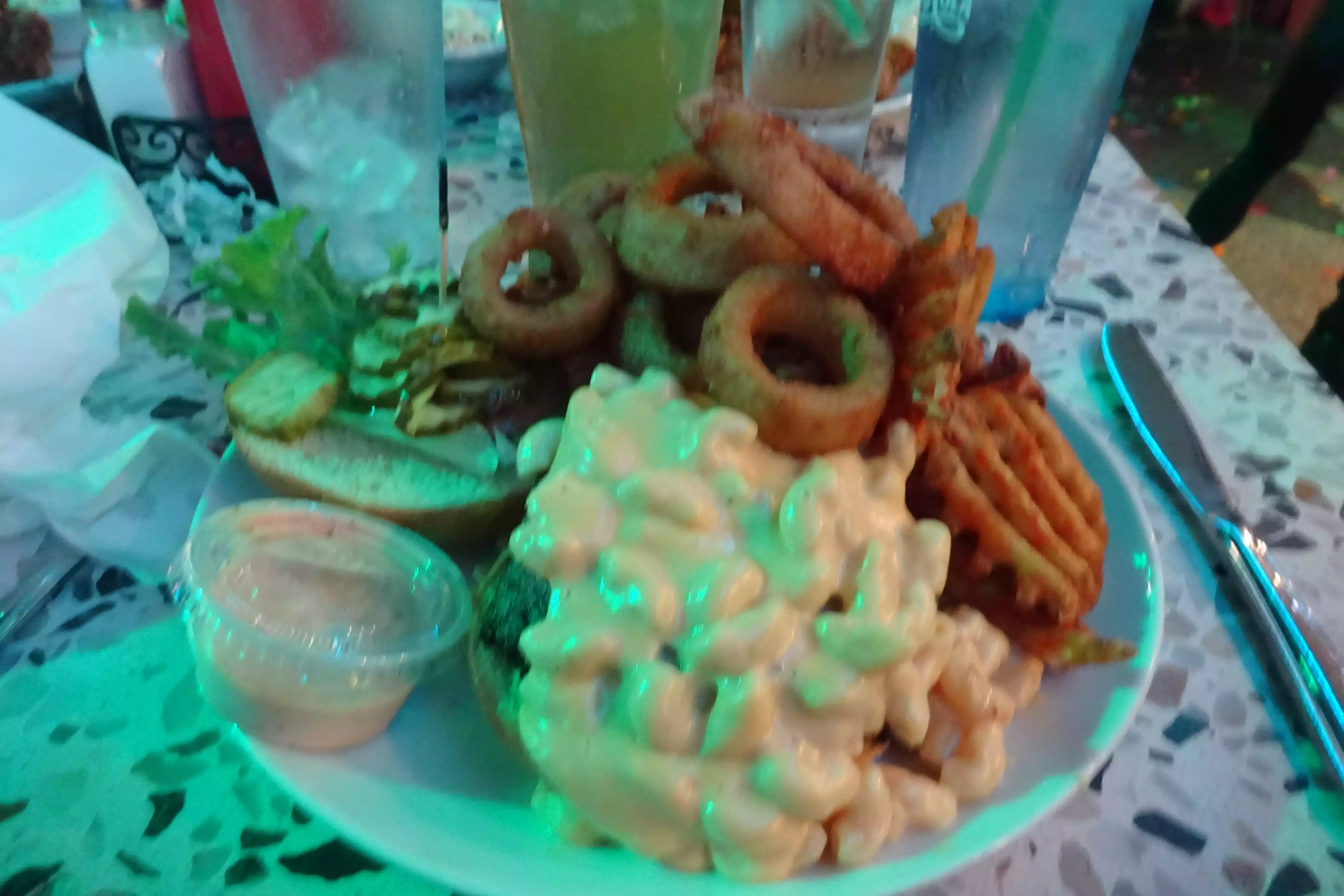 Great food and the servings are huge! I couldn’t finish my burger. This place is so fun and everyone is so talented!