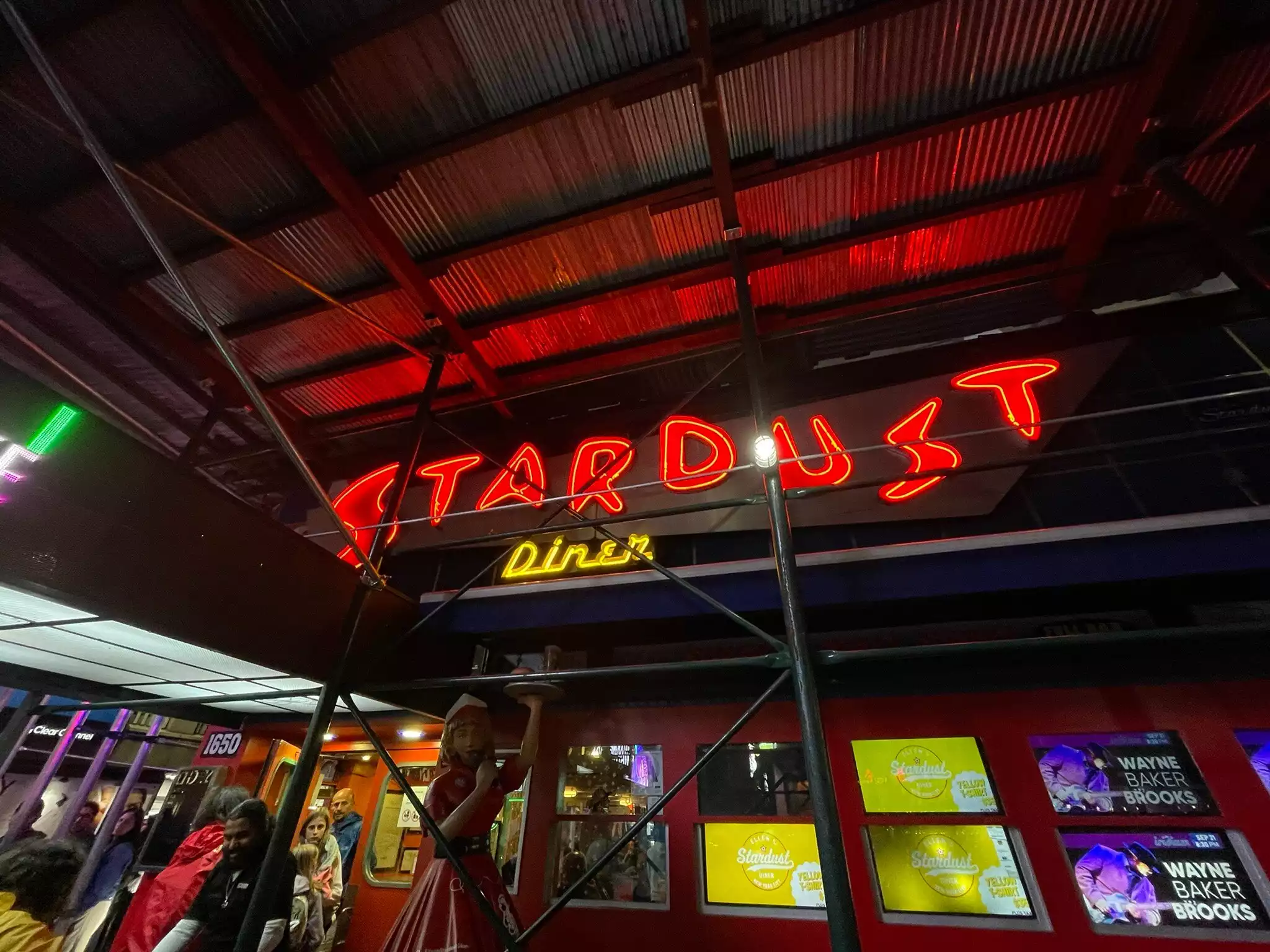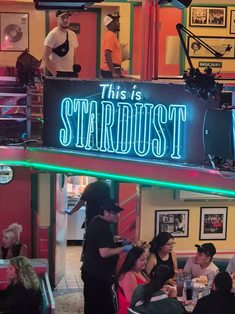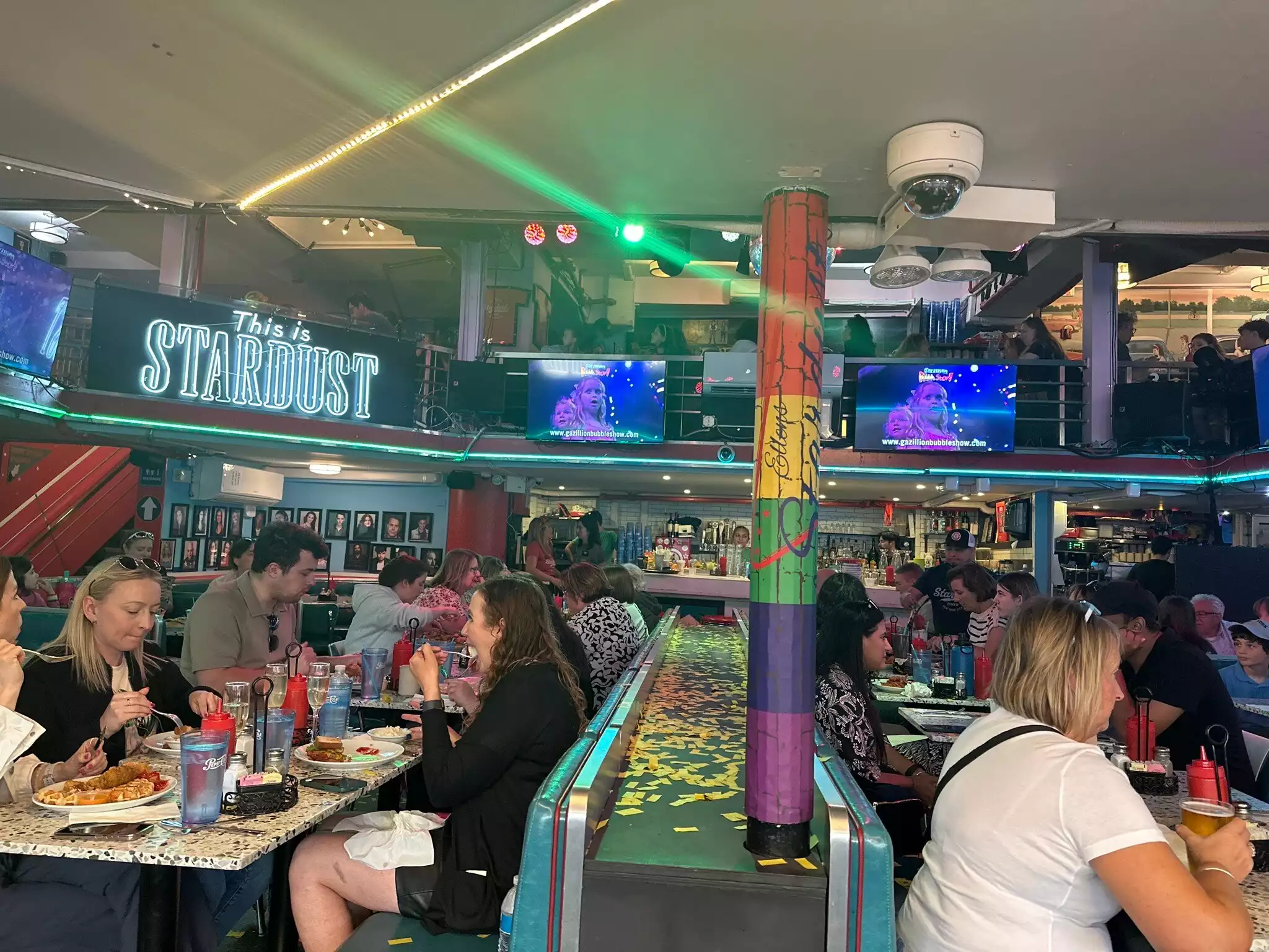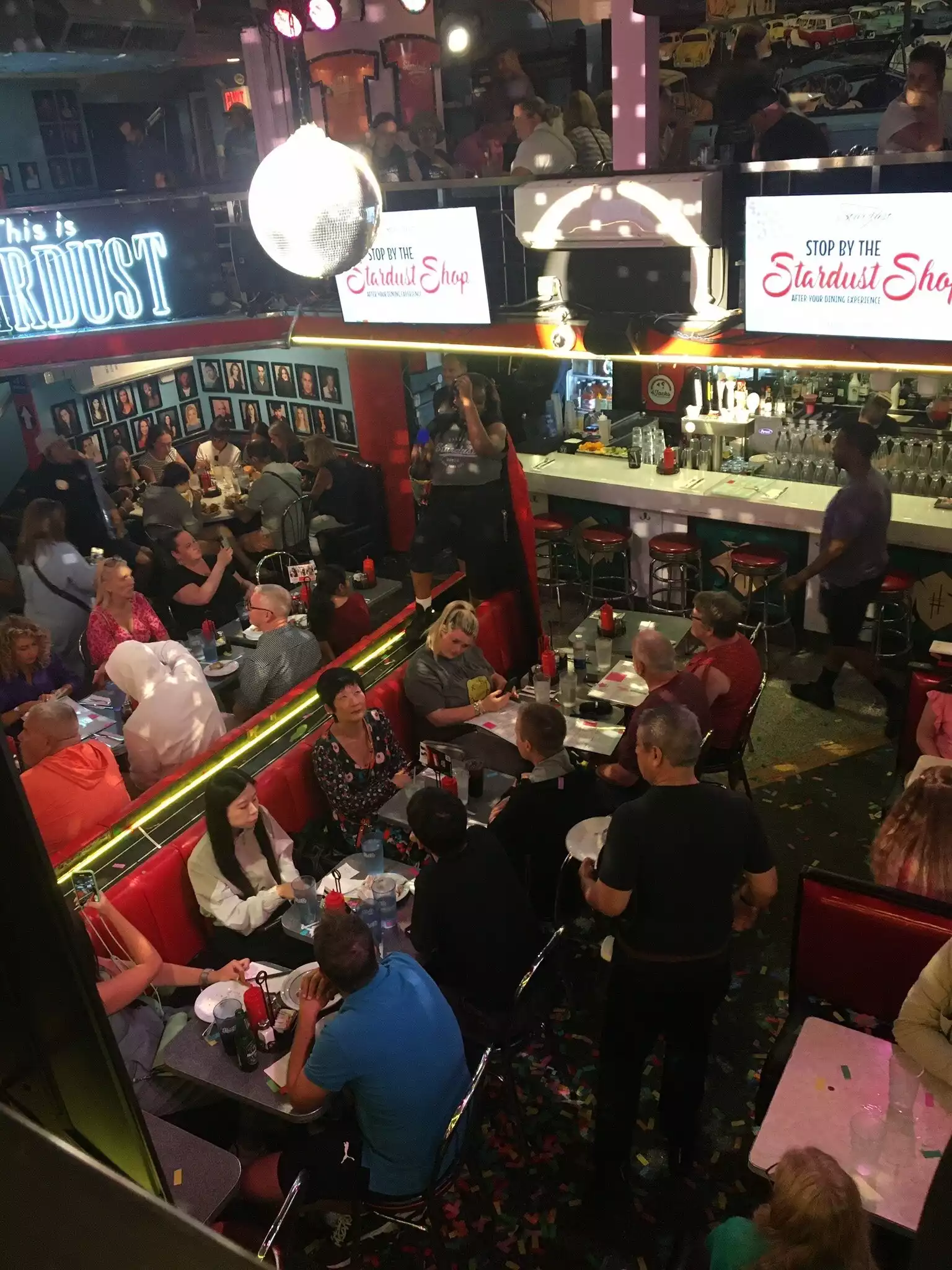 Great visit again to the Stardust diner. Went with my 3 daughters to celebrate my eldest moving to Australia. Staff were superb and although they don’t do requests on this special occasion they did. Thank you to Mollie for doing a great version of Taylor Swifts All too well. Brought on the tears, in a good way. Breakfast / Brunch was huge and tasty and the cocktails were flowing. Great atmosphere provide by all Staff and Performers. Fantastic work and gesture by all at Stardust diner.