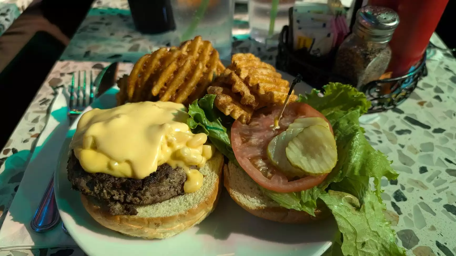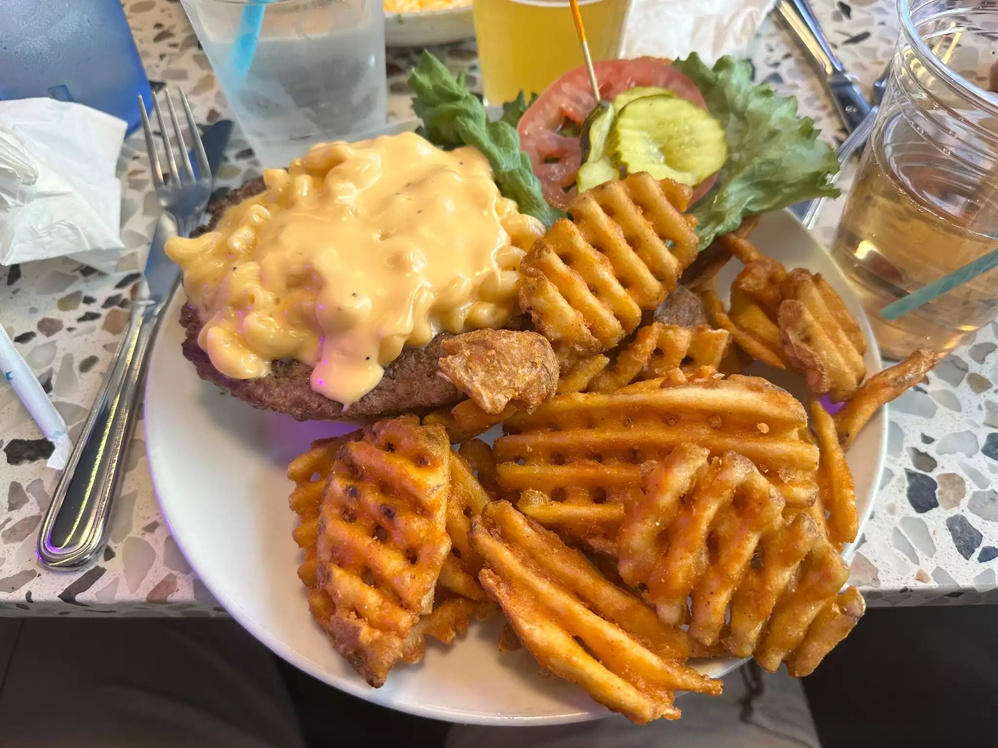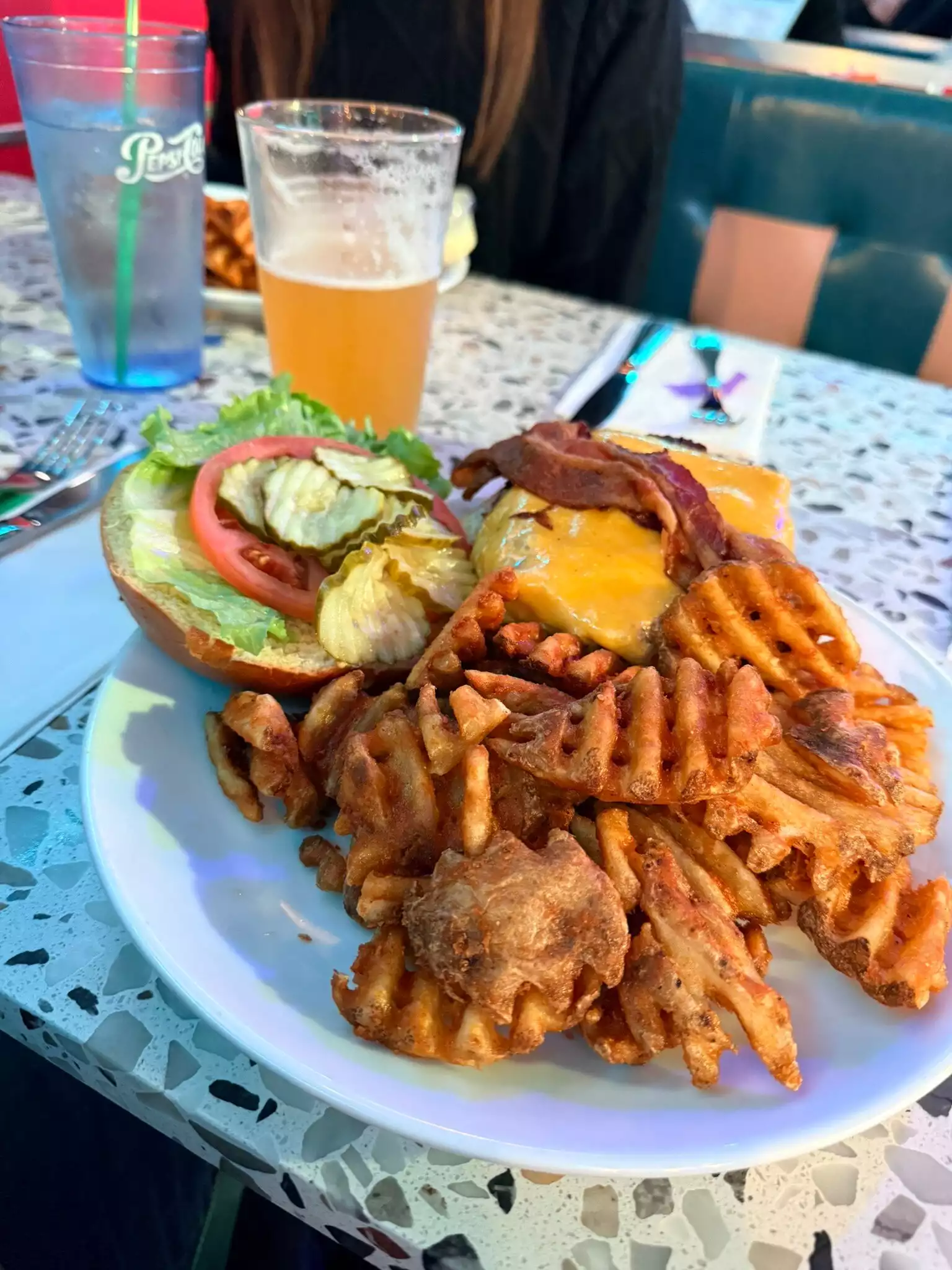 What a fun restaurant! Service was just ok, food was fine. But a great unique experience. I was excited they had a dairy free milk shake. We arrived at 10:45 on a Thursday and waited only 15 minutes for a party of 2.
