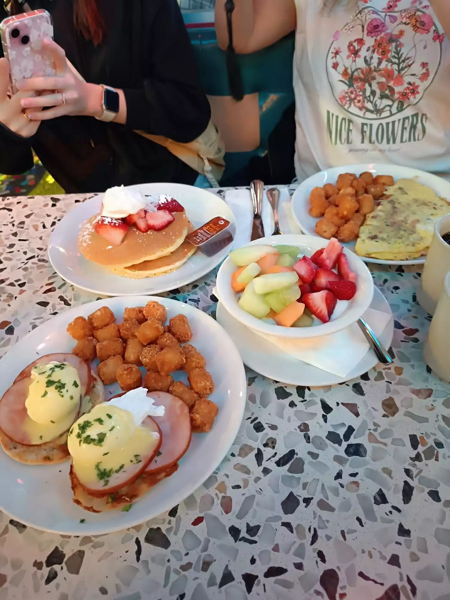 We got here for 8am and were seated straight away (we expected to wait in line). We were really excited to visit as we’d heard all about the singing wait staff. All in all, I’m glad we went as it was a unique experience but the singing is the best part (and some are better than others). The service was really not great - our waiter didn’t check on us once and I was desperately trying to get a coffee refill. On top of this, we had the host go around asking for more tips. I did give and I did tip on top of that but felt it was a lot for what we actually got.
