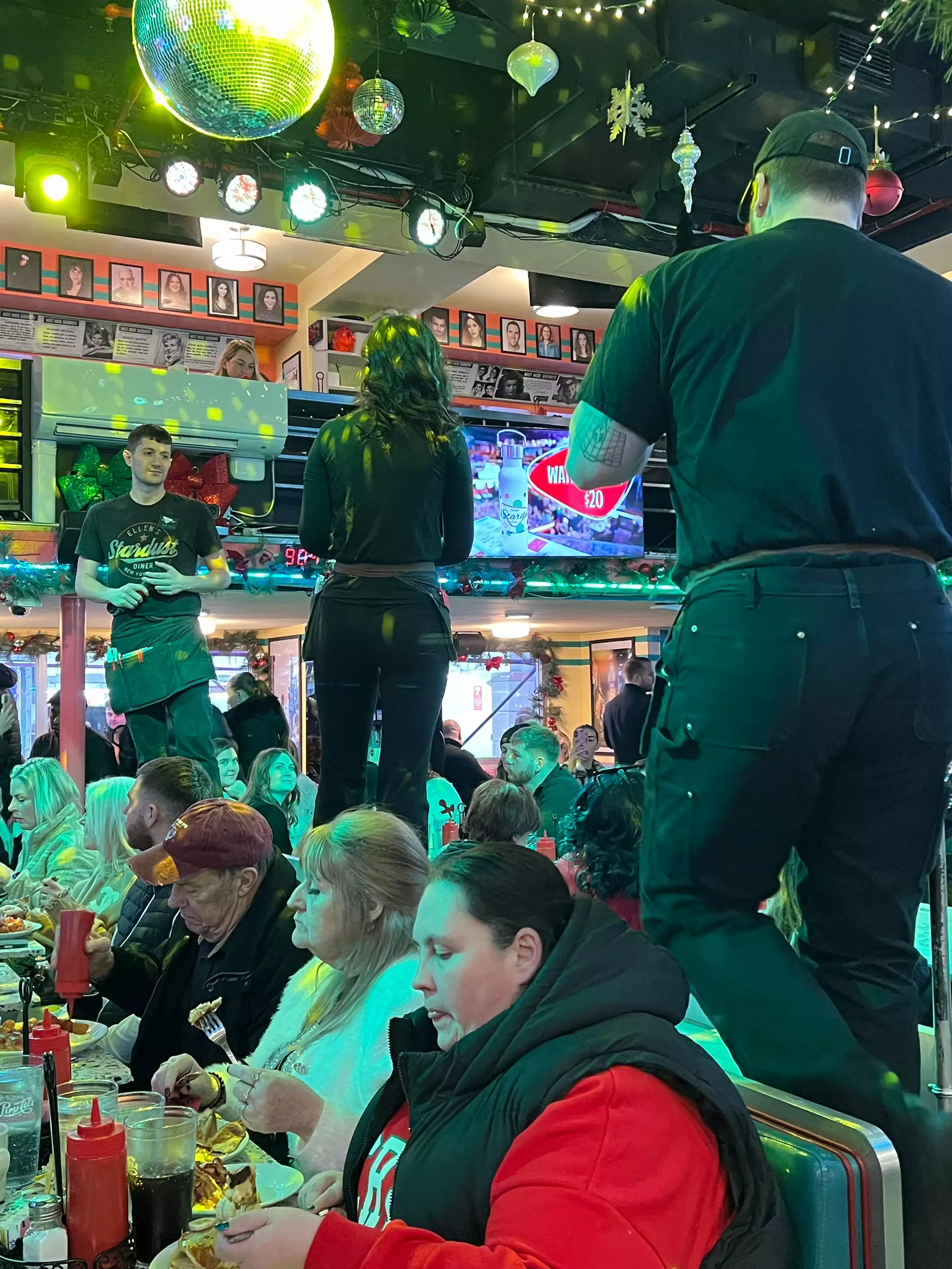 A lovely diner traditional American look with a twist! Singing waiters and waitresses lovely wee place very entertaining and not too expensive
