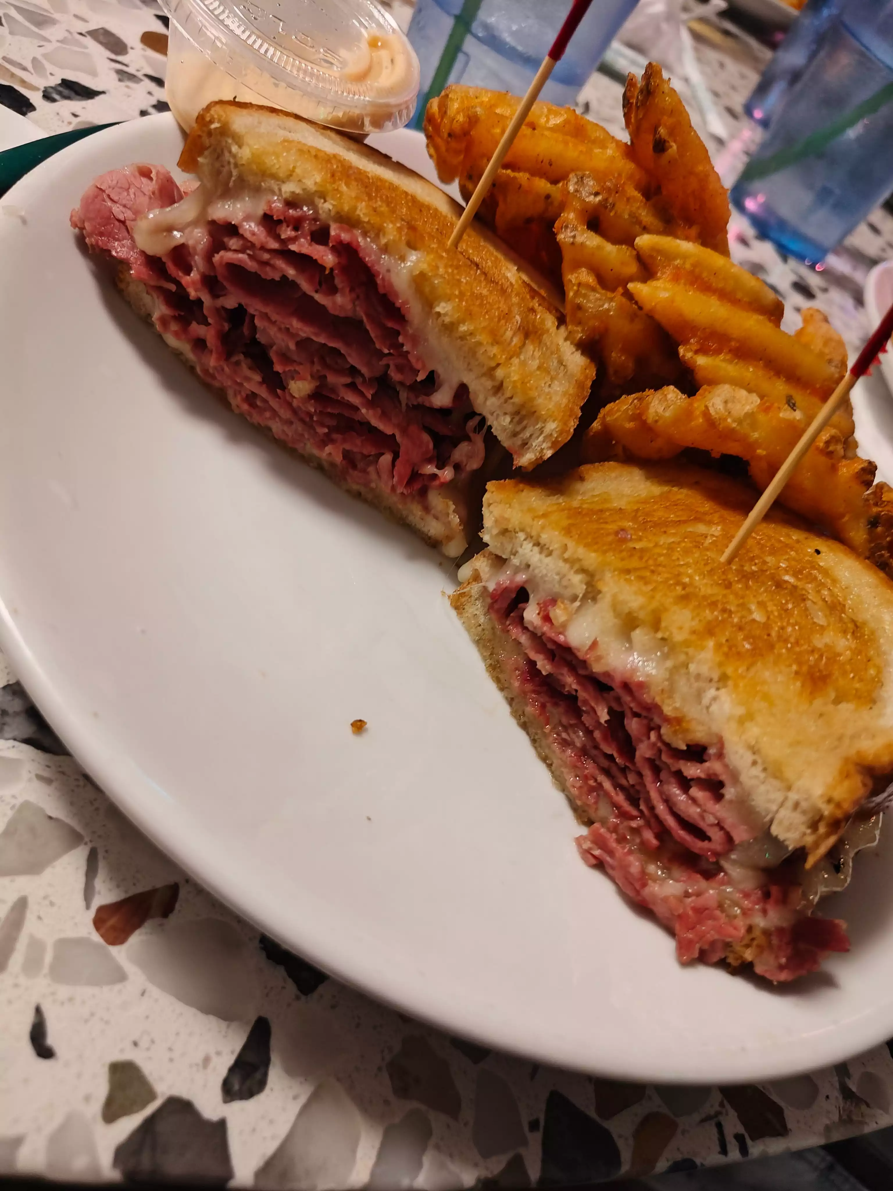 Great interactive musical numbers from future broadway stars who provided amazing service to boot! Portions are large and table space is limited - keep that in mind when ordering. The Ruben is a great option here!