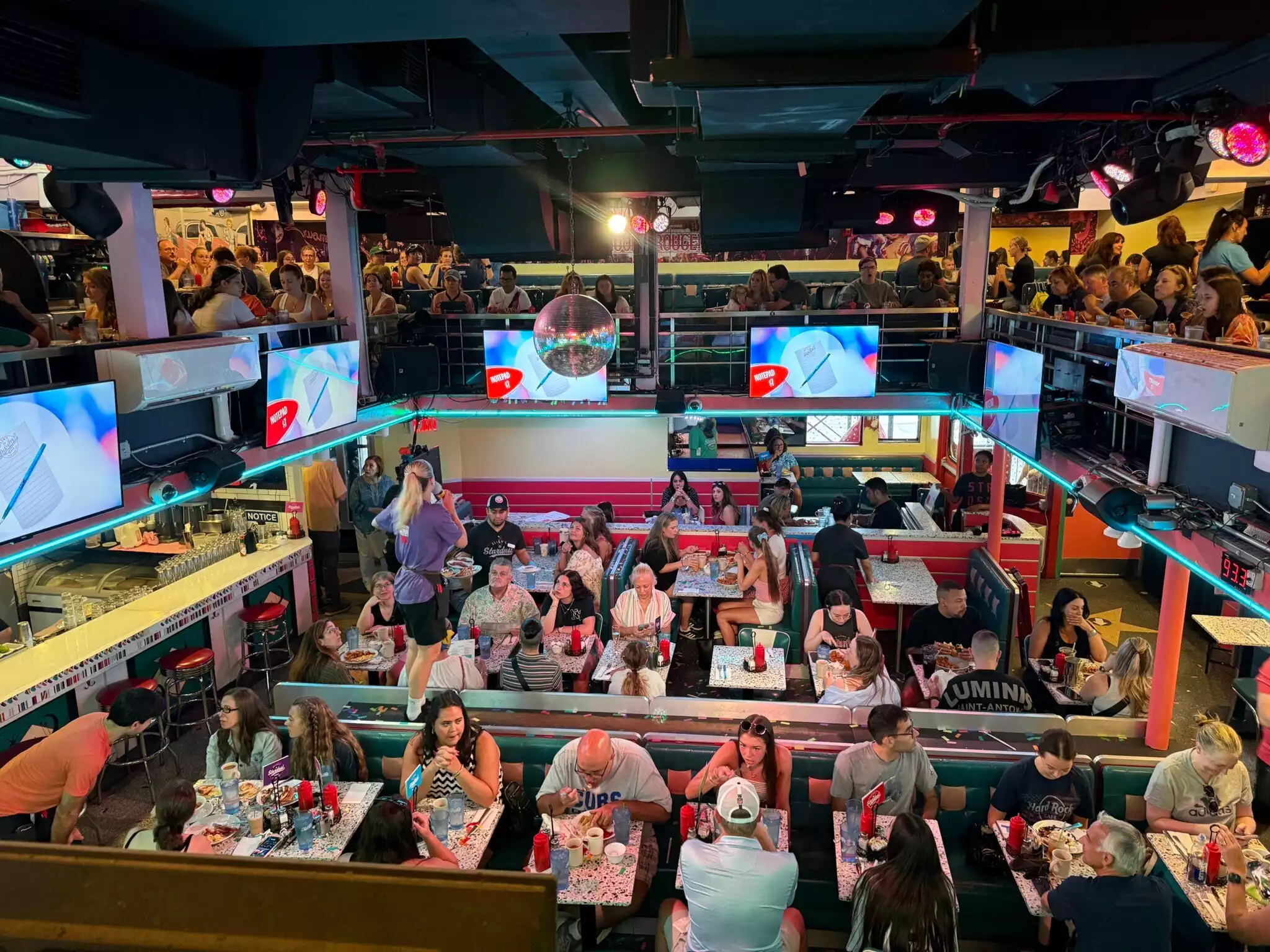 We visited after seeing a show on Broadway (11pm). The line was long but they got us in fast! Our server had fantastic energy and we loved hearing her sing - we sang along loudly with the whole restaurant. We sat upstairs and they had tv screens so we could see what was going on downstairs on the main “stage”. The food was amazing and the vibe was worth the hype this place has earned. Highly recommend to all theater kids!
