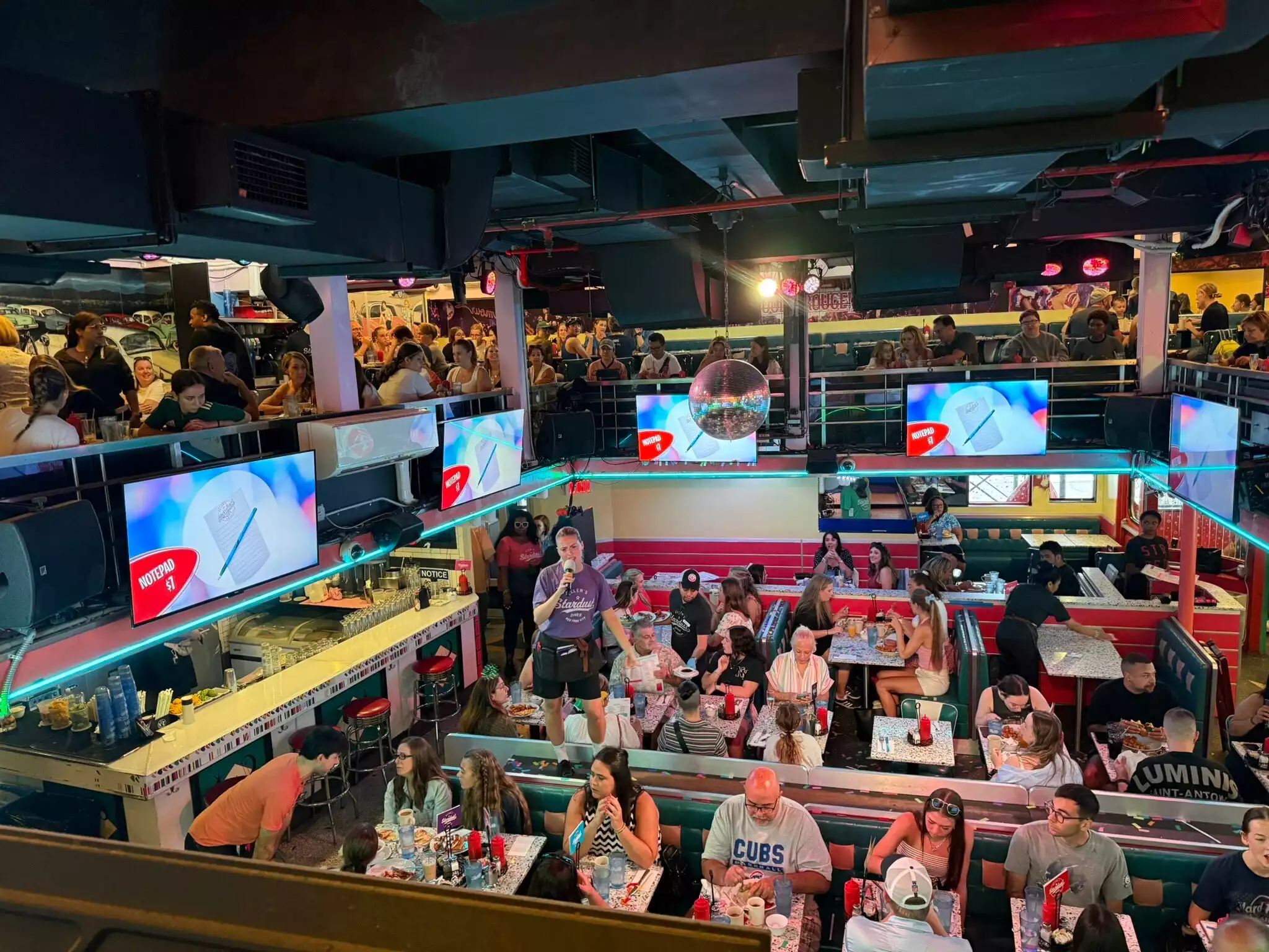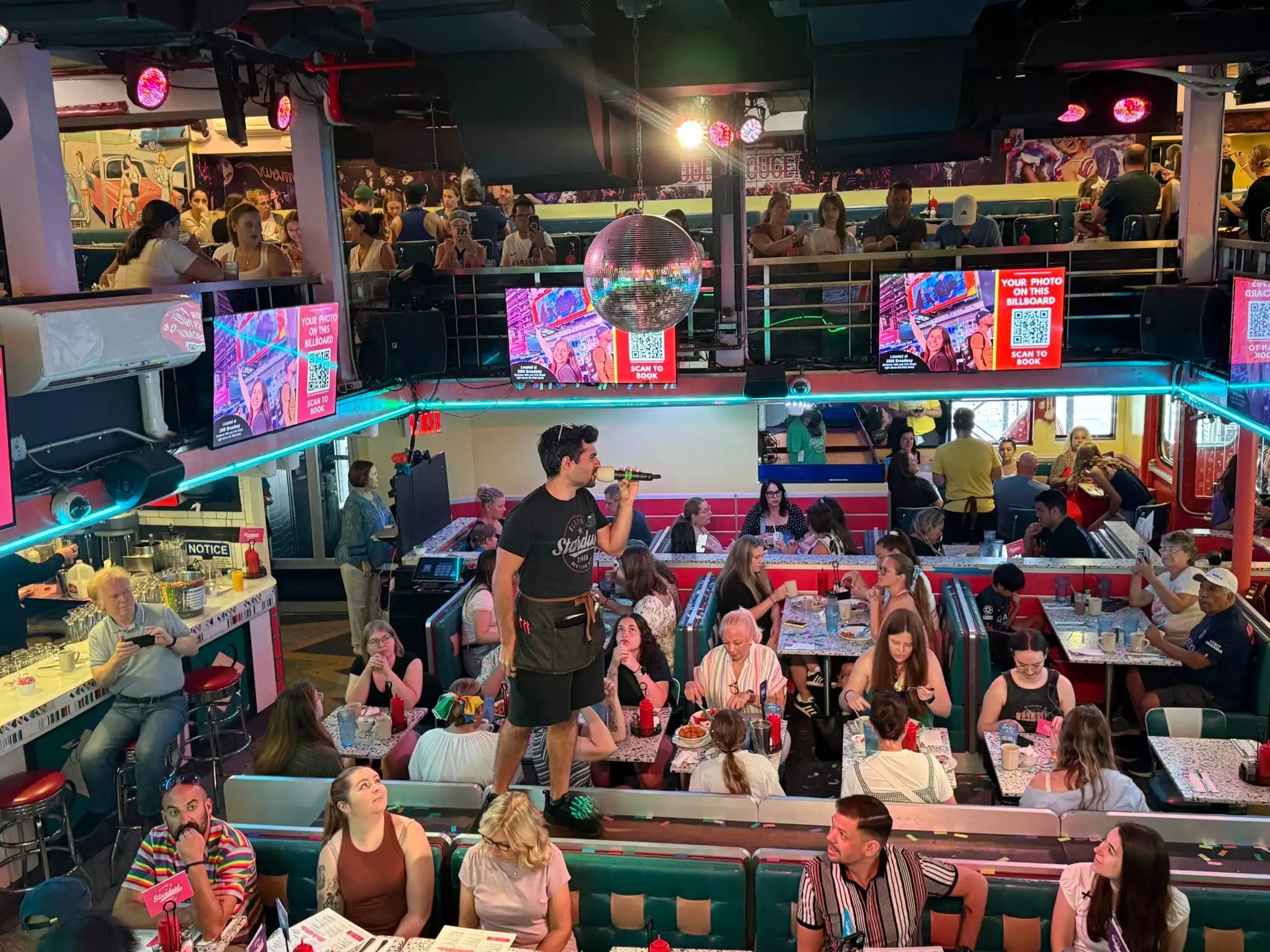 A really unusual place to spend an unforgettable evening and leave with stars full of eyes! Sometimes it takes patience to get in, but like three years ago, we were lucky to get a table after just 15 minutes waiting. If you are looking for a quiet restaurant, this is clearly not the place. However, if you want to live an extraordinary experience, surrounded by real artists who are also your servers, then don’t hesitate a second! Mood is crazy, decibels high – as is the incredible talent of singers who perform songs from all eras. Customers willingly participate, sing, clap their hands... and we have not been asked to do the same! On the kitchen side, it is a typical American food, with generous portions. It’s not gastronomy, but after a long day of walking, it’s perfectly acceptable and tasty. A huge bravo to the artists for their energy and talent. Ellen’s Stardust Diner is the perfect place for a totally crazy and joyful evening!