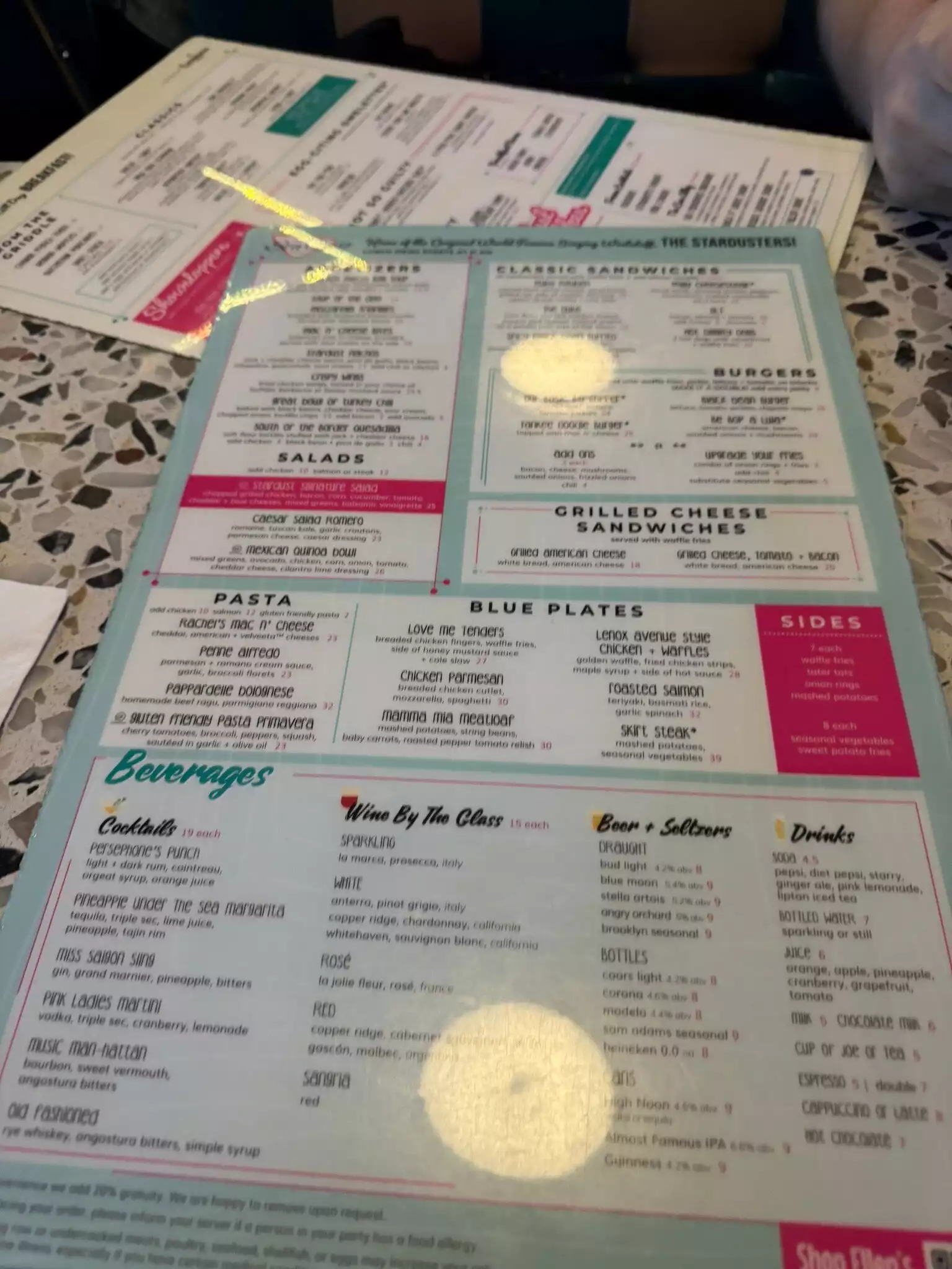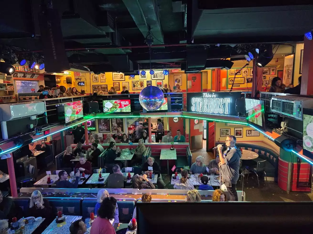 The Stardust Diner was top of my daughter's list of foodie venues to visit whilst we were in New York, and it didn't let us down.. It was bright, fun, the singing was Broadway standard and the compere very funny. Every table was full but we didn't feel crowded in or rushed at all with our meal and everyone was joining in and singing along. All in all a wonderful evening of food and entertainment. If I was to say anything the veggie options were a little limited but I think that is a New York thing !! Loved that they bring iced water to your table without you having to ask. Expect to queue though as it is very busy and very popular, but even though the queue was long we only had to wait about 20-30mins.