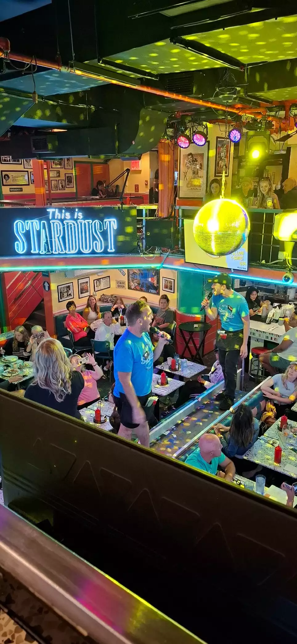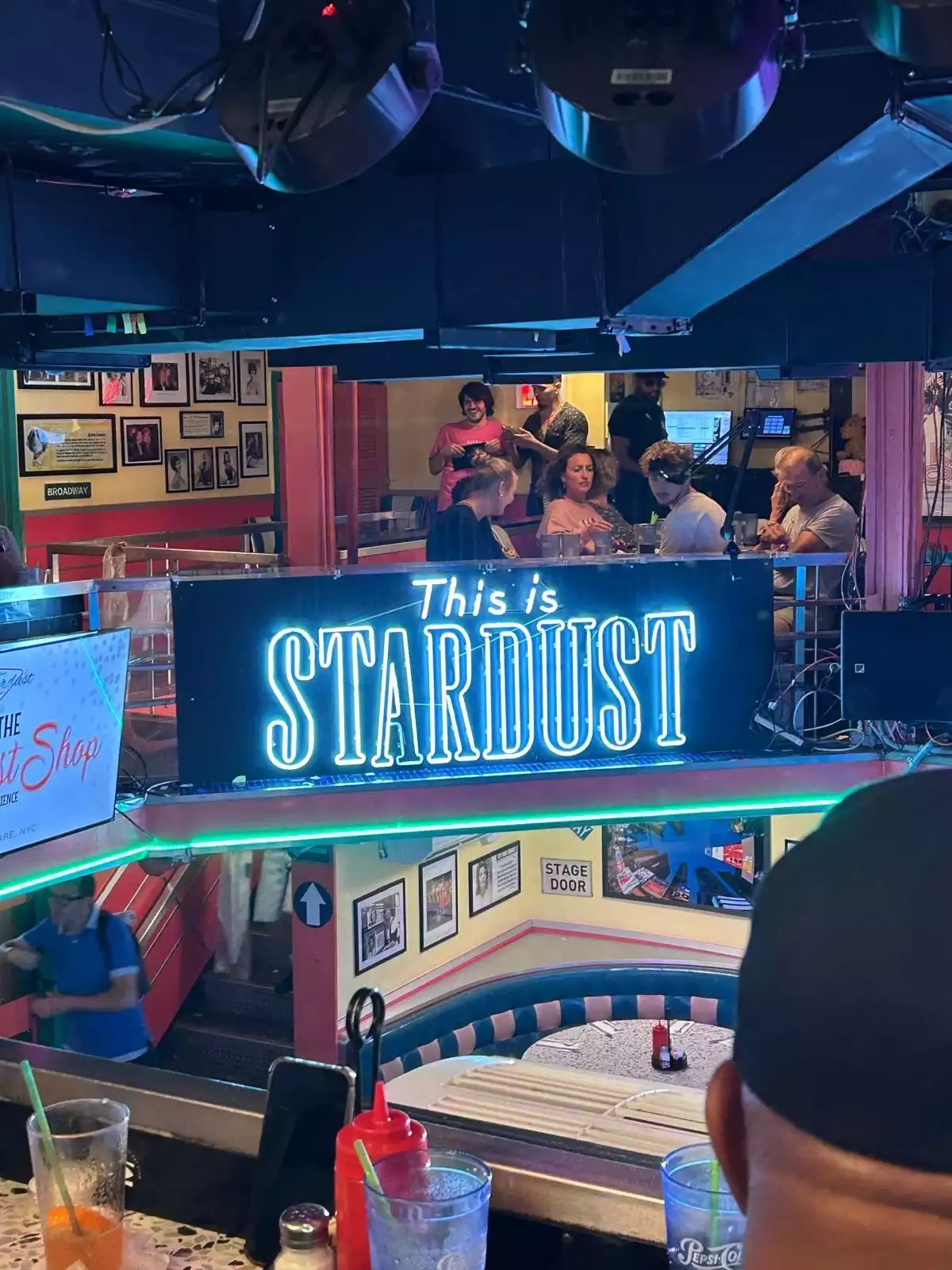 We happened by the Stardust Diner and decided to try it. We liked the performances and food so much, we plan to go there every time we are in NYC. We were impressed with the quality of the singing performances. It works well to have the “stage” in the middle of the restaurant. The most amazing part was how good the food tasted. I had the salmon and it was better than some of the famous restaurants that we had gone to on other days. We highly recommend Stardust Diner.