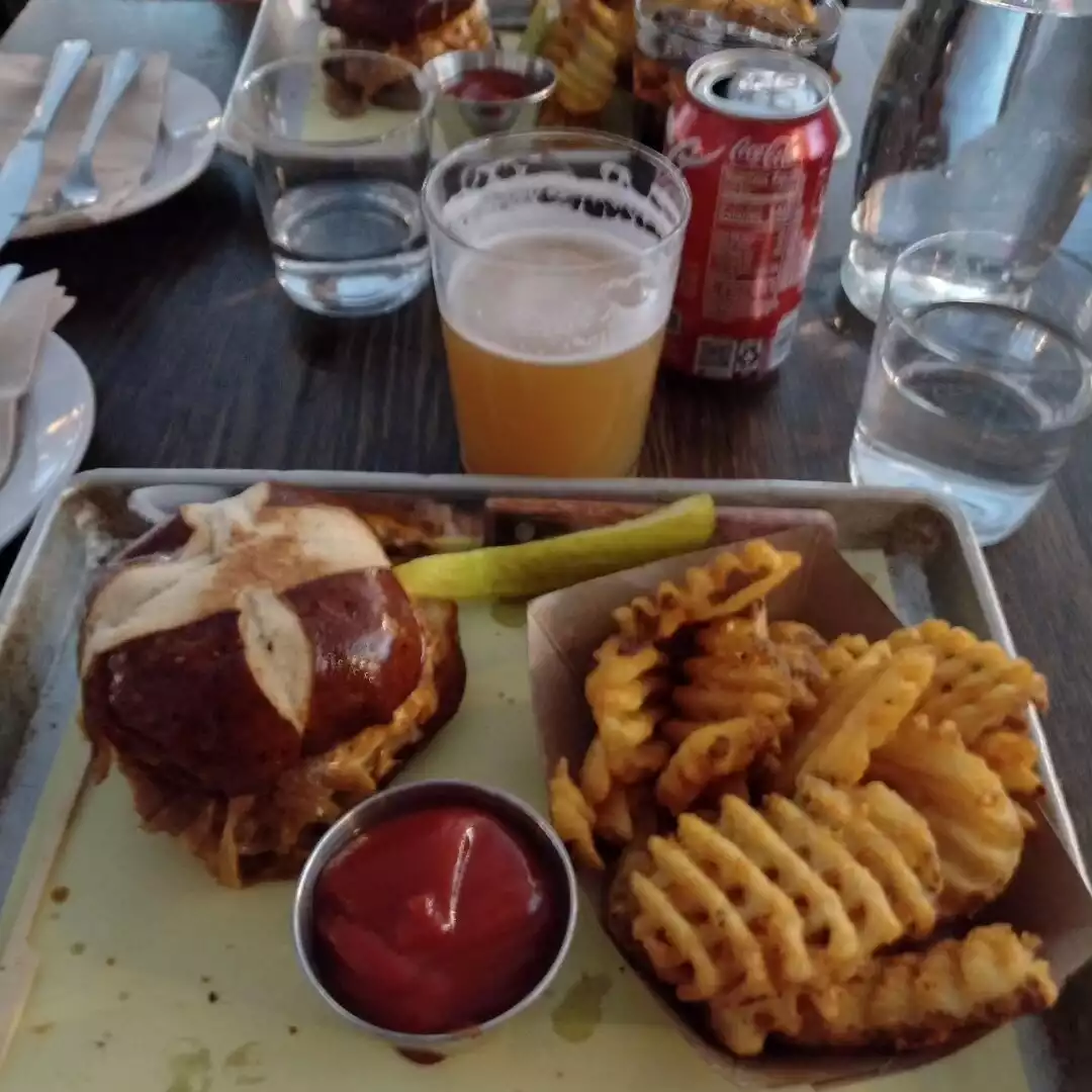 The Emmy burger - side of Crowler fries - glass of Pilsner. Great combo, everything tasted incredible, best burger I've had. Will definitely be back. Great service too