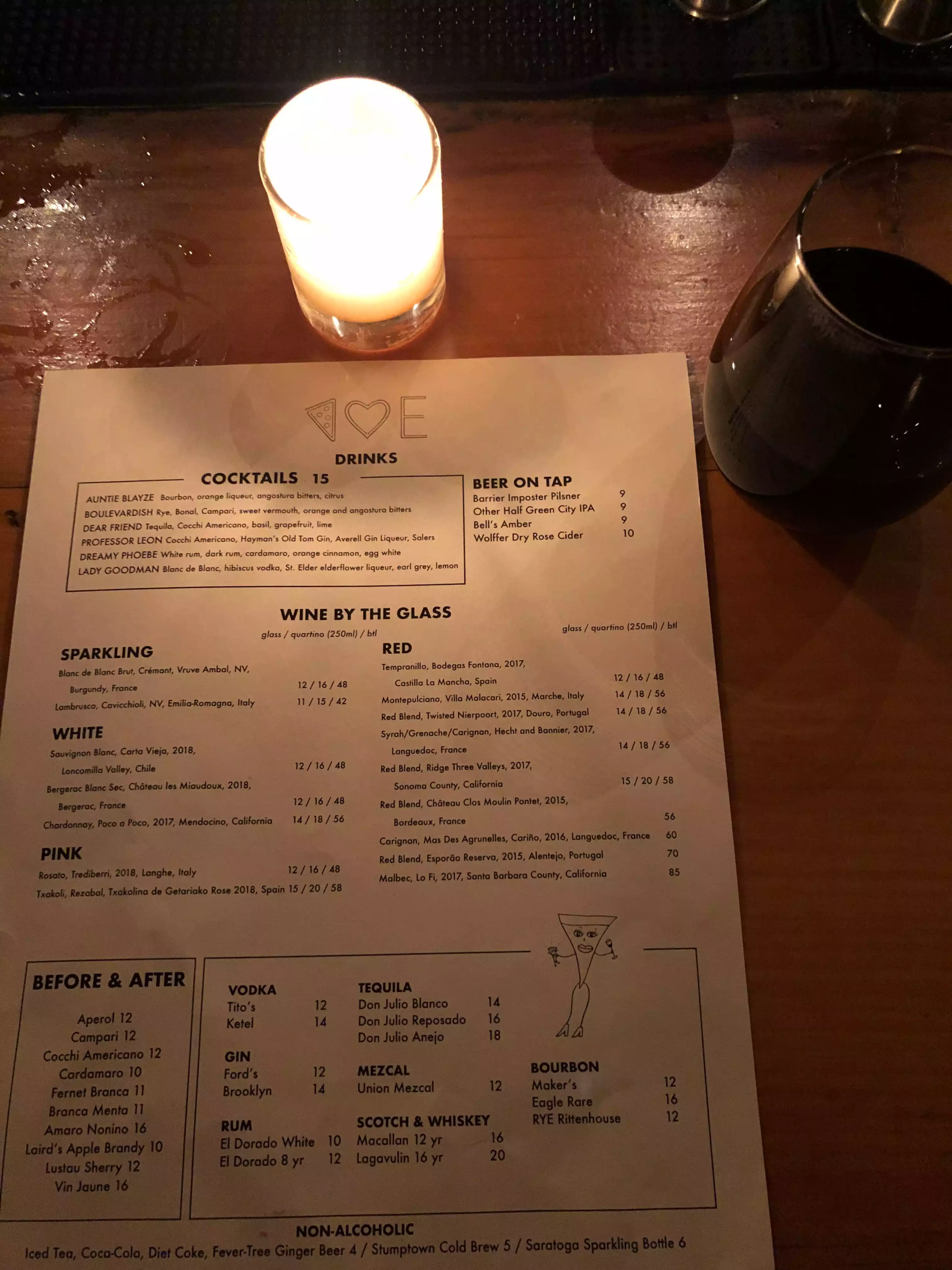 Small and cozy place, with great original cocktails but with their own twist, which makes them great. Garlic bread is fantastic, and the hamburger is really worth trying it: very tasty and flavorful (some call them the best jn NY). This place is worth having dinner for sure.