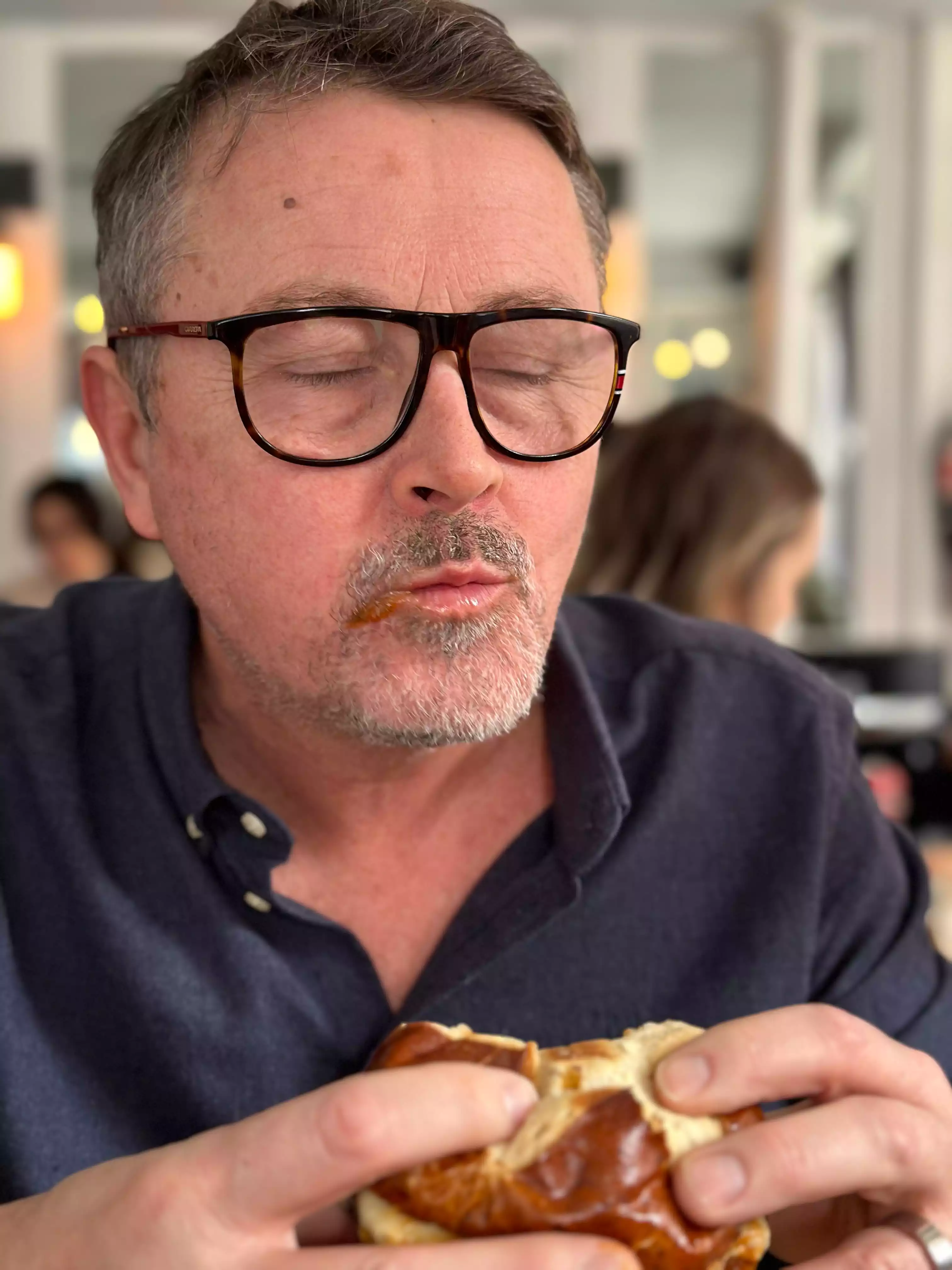 Coming to NYC as a massive burger fan, I'd wanted to find the burger that was delivering the most hype in a city full of great burgers. Emily came across my radar with the unique pretzel bun and the interesting sauce combo...so that was the one for me (coming in second choice was The Spotted Pig). There are two choices across the Emily restaurants. The original Emily in Brooklyn has the genesis of this burger - it's a single patty, cooked rare and served a little differently with a stack of onions and pickles in the Tom Cat bakery pretzel bun. The West Village Emily is a double-stack of Pat LaFrieda (I think) patties, sauce, onions and pickles, also in the Tom Cat pretzel bun. The difference is the Clinton Hill restaurant limits Emmy burgers to 25 a day...so it can be a lottery getting one...while the West Village location doesn't run out. I'm a fairly obsessive character and wanted to be sure I'd get a taste of this burger, so opted for the West Village location, a short train ride from our Upper West side digs. The restaurant itself is just my style. It's understated, it's friendly, it's cool without shooting for a trend. It feels like a nice, relaxed neighbourhood place. We were seated quickly and chose a couple of cocktails from the list to start. I had a Mr Price (gin, Green Chartreuse, pear, lemon) and my wife had the Hurricane Hula (light rum, dark rum, Aperol, pineapple, lime). Cocktails were solid but not exceptional. I followed up with a beer. I love beer but don't get obsessed with fancy craft ales...local and cold is good enough for me, and this one was spot on. We knew we were going for the burger each, so didn't opt for a starter. I opted to upgrade my standard curly fries to Crowlers (curly fries, miso queso, pickled jalapeno, olives, scallions). The fries: The curly fries were ok. Not amazing but not at all bad. They were very crispy but there was a slight memory of frozen curly fries dusted in seasoning from my childhood. They were totally fine, just not what I'd put with the burger, if it was my choice. The Crowler upgrade was nice and worth it but possibly would have been a bit better if the crowler toppings had been a bit heavier. The burger: Ok, so the main event. Firstly, the shape and size of this thing is PERFECT. It comes with a skewer through it but it really didn't need it at all. You pull that out and it's a solid and well made burger that keeps its shape. I reckon it could actually knock a guy out if you needed to use it as a weapon. And that's a positive. The patties are a perfect size within the bun and it is clearly an exercise in precision getting these put out the same every time. I've seen pics of people cutting them in half, then eating like that but for me, that's a huge no-no. A burger should be consumed without cuts and with the hands only. So a light squash down, two hand grab and a confident bite was my approach. The bite was dense, juicy and flavourful. The first thing you get is that incredible Tom Cat pretzel bun. It was so unusual for me. It's robust, has that alkaline/bitter pretzel flavour and seasons the whole burger bite. It is an absolute revelation. The next thing was the sauce. It has an artisan McDonald's special sauce vibe - I mean this in a good way. I think the sauce was laced with gochujang, as it has a bit of a kick, but it also has that pickly/onion/sweet memory you get from the McD special sauce. Not a comparison to McDonald's at all - I wouldn't eat in the place - but a McDonald's burger has a memory probably for most of us, so riffing off that was nice for me. The patty. The patties to me were the only slight disappointment. There's only so much you can do with patties like this - I did get the feeling these were possibly provided as a patty in this shape and form from the meat producer. They were good and cooked quite nicely, although possibly a little overdone...it's difficult to get a nice medium/medium rare temperature with thin patties like this to be fair, but they were a nice pink at least. I would like to imagine the restaurant would buy its own blend of cuts in and grind/shape in-house but I'm not sure if they do. Whatever the case, these things were not a disappointment. I'd just like to have tried the original single patty in the Clinton Hill location for comparison. The rest: The pickles weren't special on their own but they added a lot to the burger. I enjoyed how many there were and how they were distributed on the bottom of the bun. I also respected no greenery in the burger, like a token lettuce leaf. If it doesn't add anything, don't put it in. Kudos to the chef. Overall, this place really ticked the box for me and I'm so glad we went. I'd booked from thousands of miles away and looked forward to it for quite a while, so the pressure was on Emily to deliver. And deliver it did. Loved it, would definitely recommend and would definitely go back. Worth the hype. PS for those who complain about $25 for a burger...get over it. It's exceptional value for what it is. If you want something special, something satisfying and something original it's an absolute bargain. We got a terrible diner brunch the next day on the Upper West Side that was more expensive!