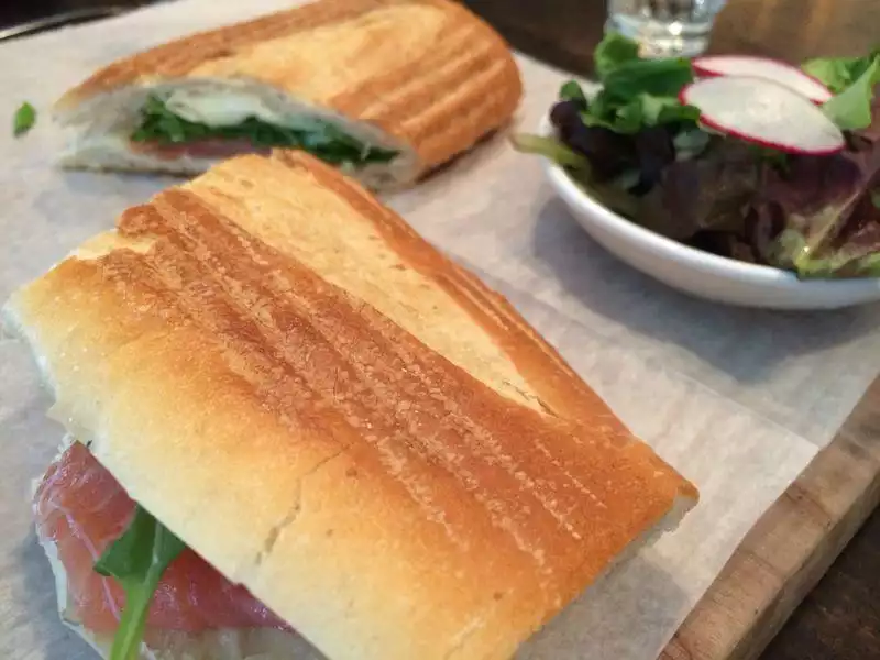 We were actually headed to the bakery next door that we had heard good things about but ended up here when it was closed. It was full on a Sunday at 3 in the afternoon so we took this as a good sign and turned out we were right. Sandwiches were perfect and reasonably priced, service was great, and jazz music wafted thru the funky and well appointed space. The basel and pinenut gelato was both inventiveand delicious. I'd have no problem going back and discovering more of their menu.