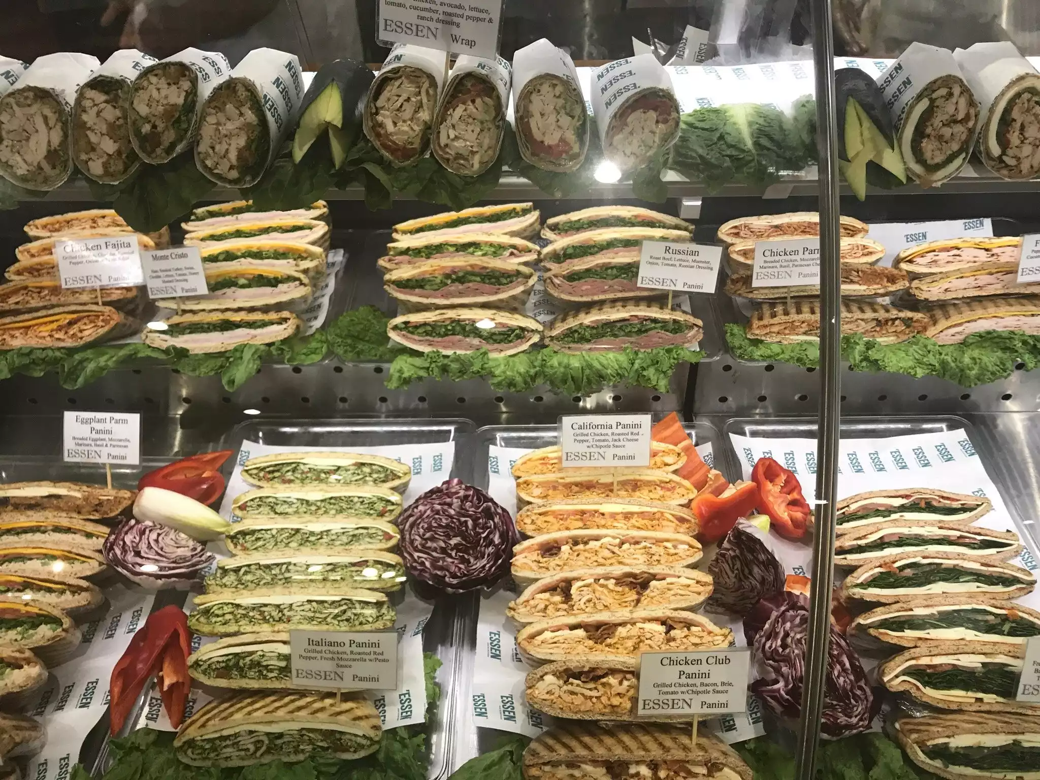I was in NYC at Unified auditions and needed a quick bite to eat. Someone recommended Essen and I had no idea what to expect. The storefront was obscured by scaffolding but once you enter it is clean, well lit and has an amazing number of food options. I ordered a sandwich at the deli in the back. It was a turkey sandwich with hummus spread and it was delicious. I paid about $10 bucks. I did not have an opportunity to try the hot food bar but I would definitely check out other options on my next NYC trip.