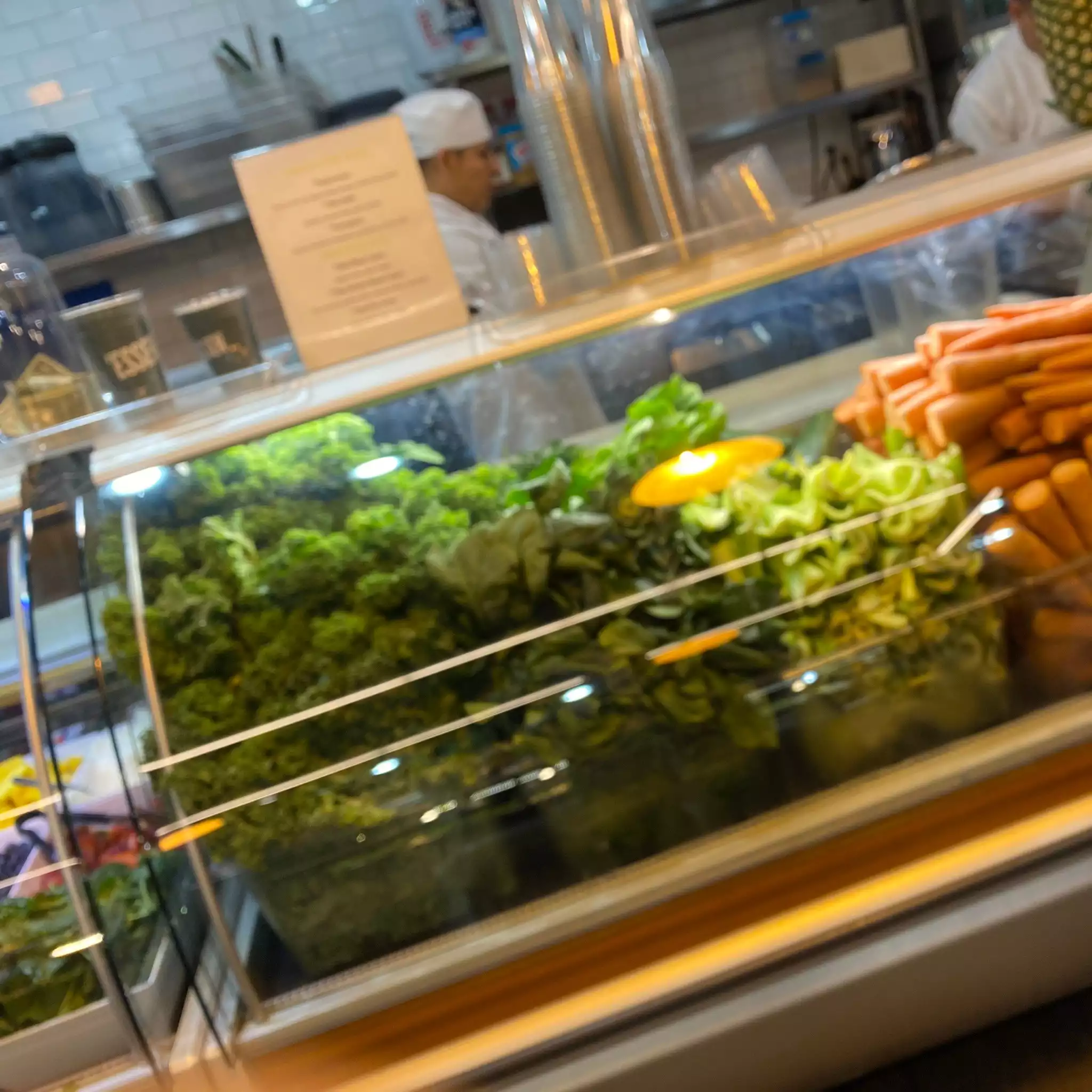 Lots of great fresh food options, with a hot bar, salad bar, and place to order other options.I loved the oatmeal bar, with options for milk, coconut milk, etc. Good seating area upstairs.