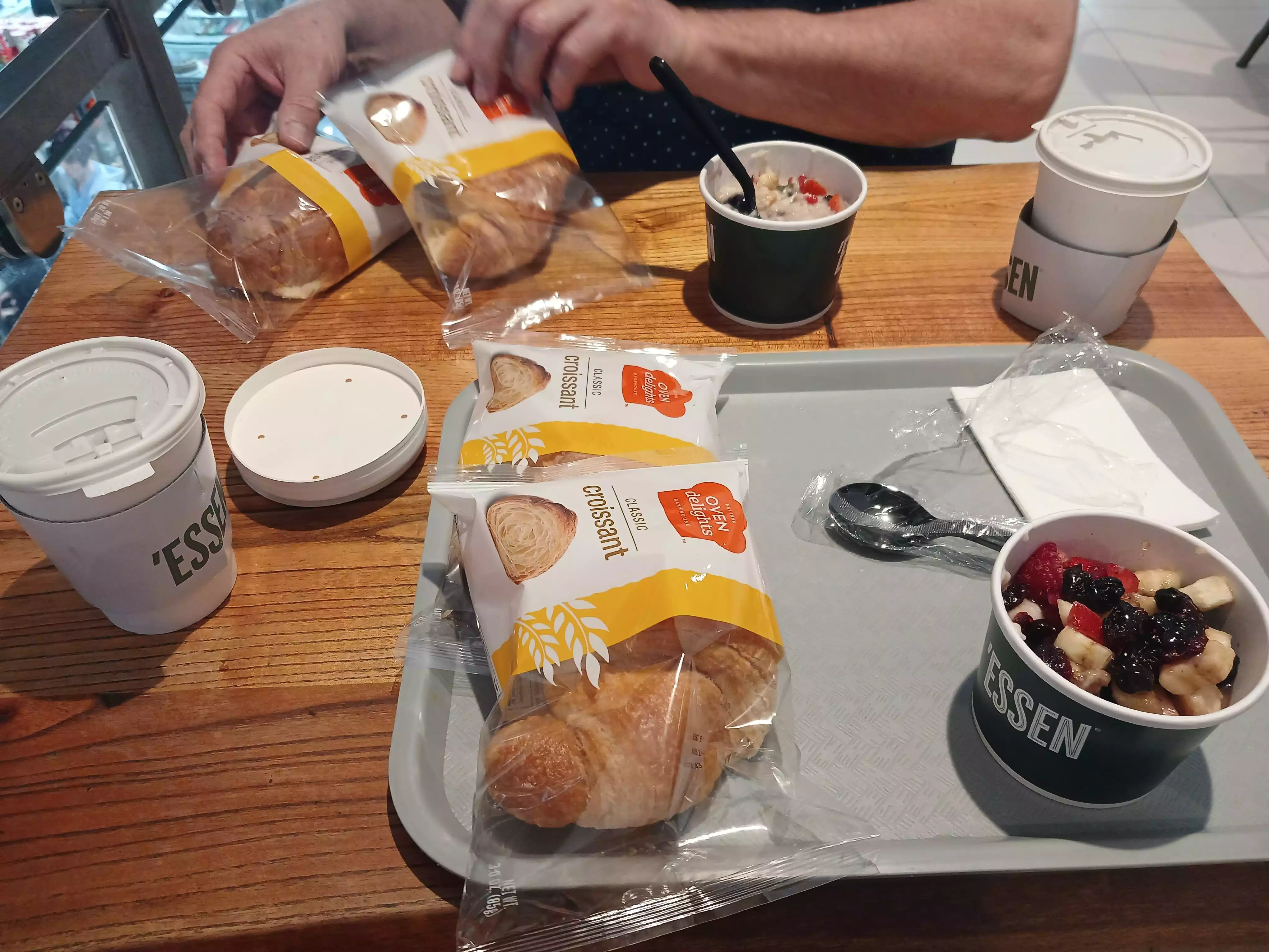 4 of our 7 breakfasts were eaten here. Bagels were fresh and toasted to order with a generous schmear of cream cheese. Sausage egg and cheese croissant was good. Coffee brewed fresh and Essen had numerous flavors and cream choices. It was a beehive of local activity every business day.