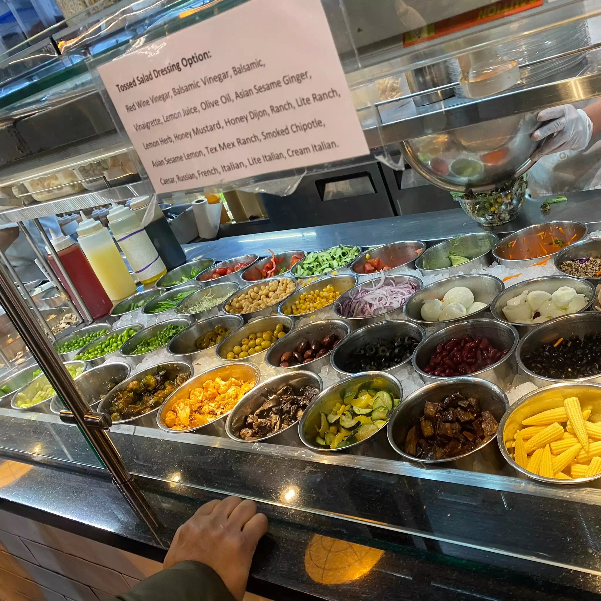We stopped here for lunch before getting our train to Boston. There's plenty of cafeteria style seating upstairs. There are 100s of choices of salad, hot foods and desserts. You pick which size bowl you want and you can then add whatever you want. I had teriyaki chicken, sesame chicken, tempura vegetables, pasta, rice, wedges, mushrooms, salad and lots of other bits and pieces. You pay by weight. It's not the cheapest place I have been to, my salad bowl was $13 but the quality was high and we will definitely return.