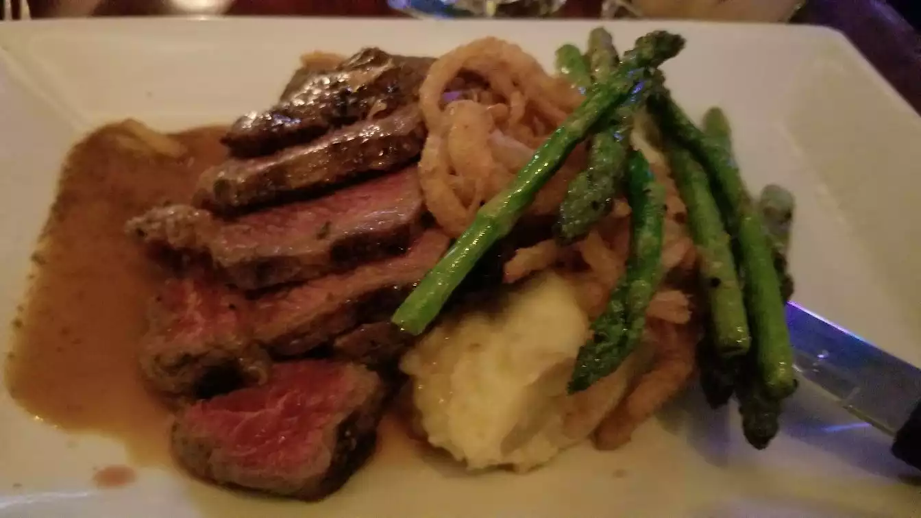 Looked for a good meal around the area. Menu seemed like a good variety at a good price. Happy hour until 8 pm. Half priced drinks. $1 oysters. House made cocktail sauce was great! Great cocktail menu and I'm a cocktail snob. NY strip was cooked perfectly. Wife's pork sliders tasted great. Highly recommend. Can't beat the happy hour deal. Service was attentive and friendly.