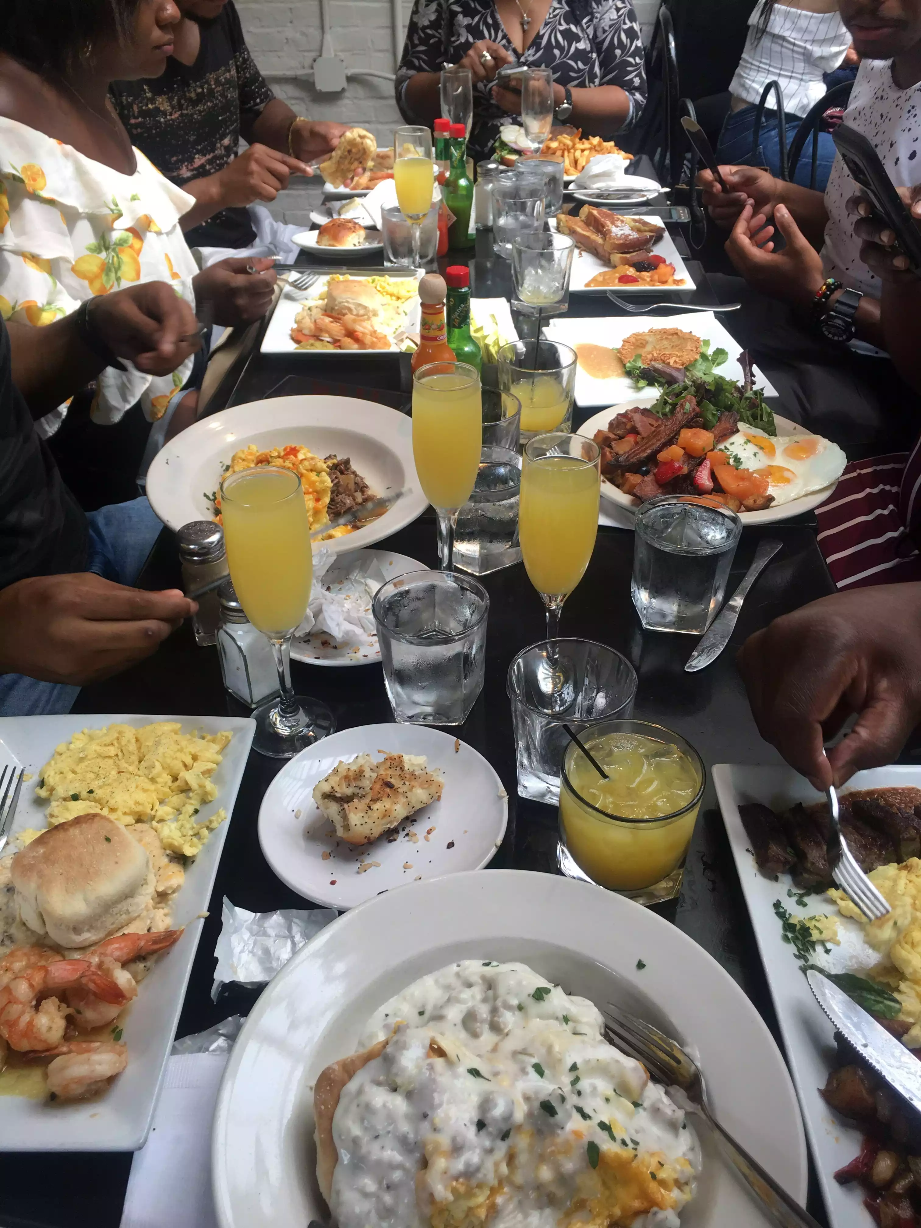 My friends and family all came here to celebrate my pre bday with a bottomless brunch. The place was packed. Please know they won’t seat you until your whole party has arrived. The music was a mixture but good for everyone joining. Definitely won’t be any complainers when it comes to the music and drink mixture and oh yea, you will get tipsy so dance if you feel like it (it’s allowed) lol. The food is the best part. So many choices to chose from. For the price that you pay and the amount of food you get , I will be making a second trip back it’s totally worth it. I ate the Southern...Omg it was so delicious.