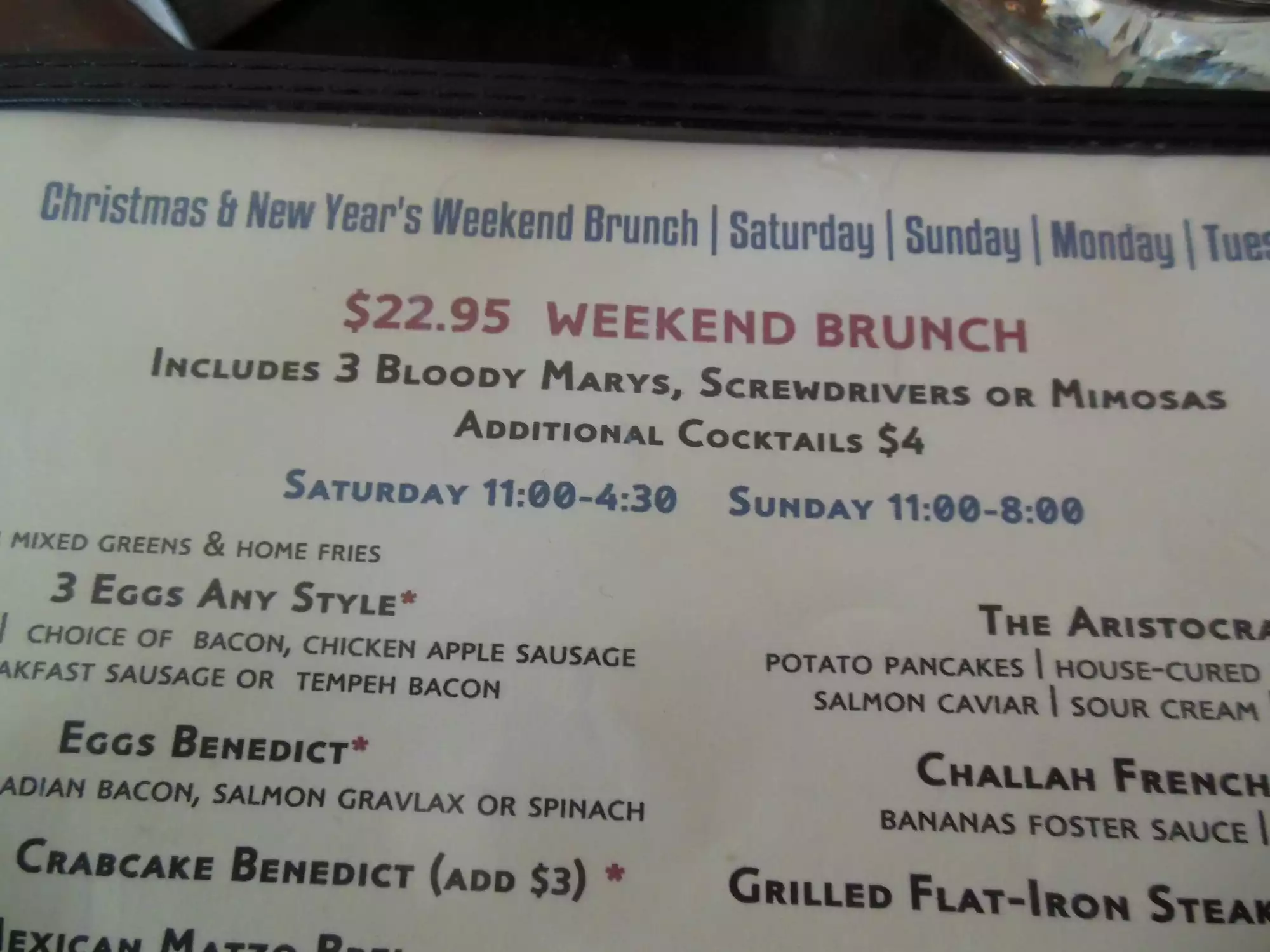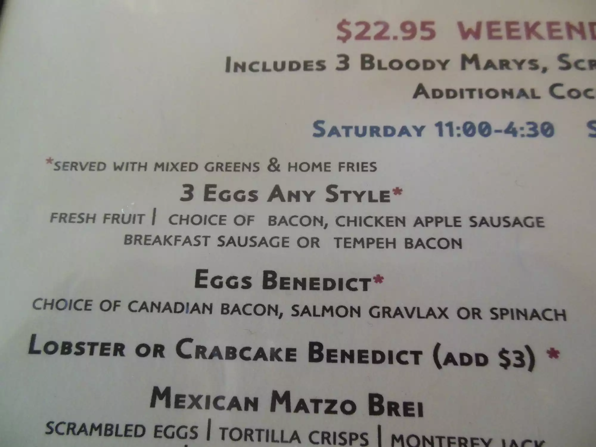 Very extensive brunch menu, including refills on Mimosa, Bloody Mary, or Screwdriver. Great choice of entrees, some with a Tex-Mex flavor. Bargain price $23.95, but cash only for brunch! Make a reservation if you don't want to wait.